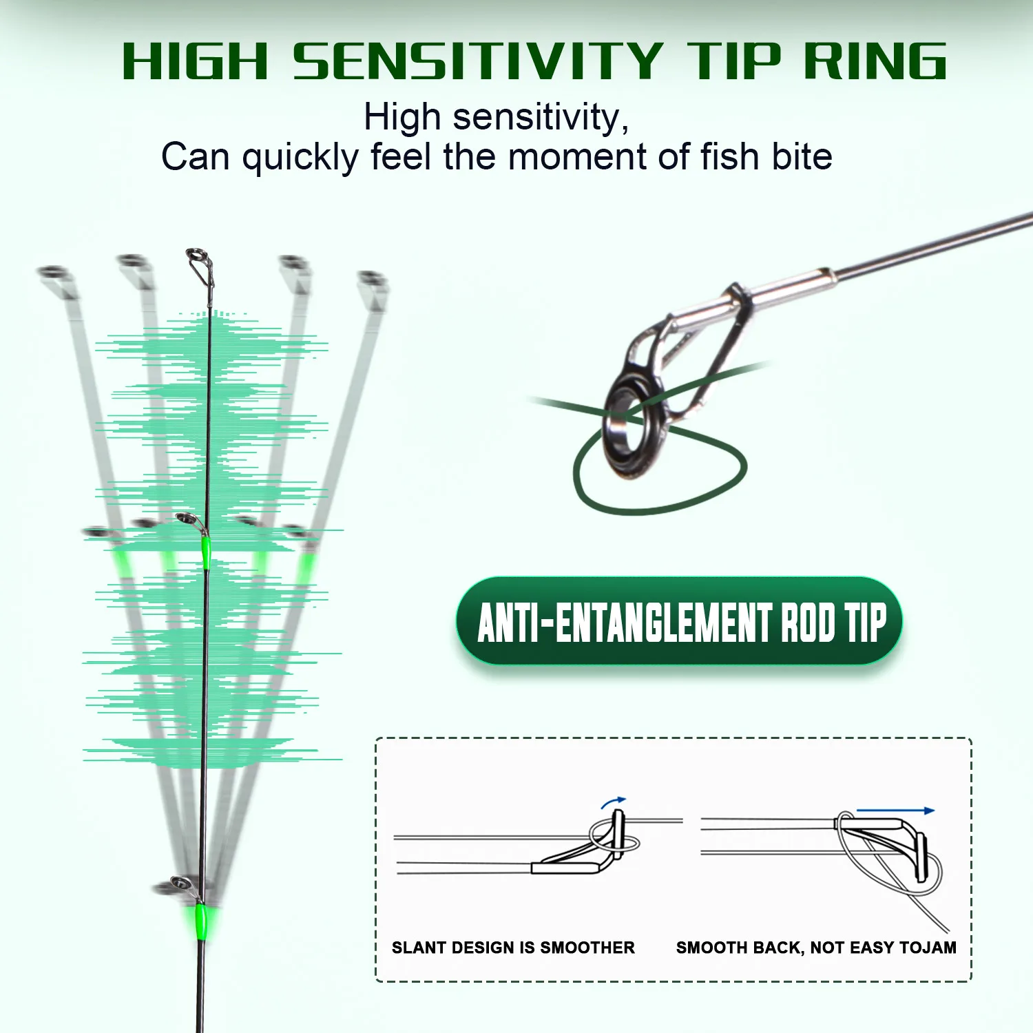 Caña de pescar giratoria Sougayilang, cañas de fibra de carbono de 5 secciones, arrastre máximo de 1,8 m-2,4 m, cañas de pescar de 6,6 lb para pesca en agua dulce