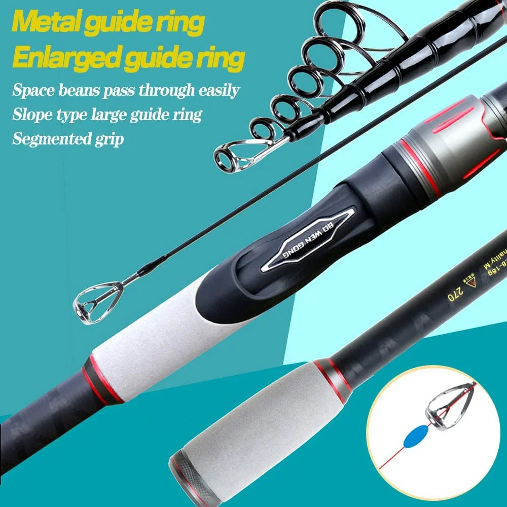 Caña de pescar giratoria telescópica, 1,8/2,1/2,4/2,7/3m, caña de pescar de carbono ultraligera con punta sólida M, peso de cebo de 8-18g para todas las aguas
