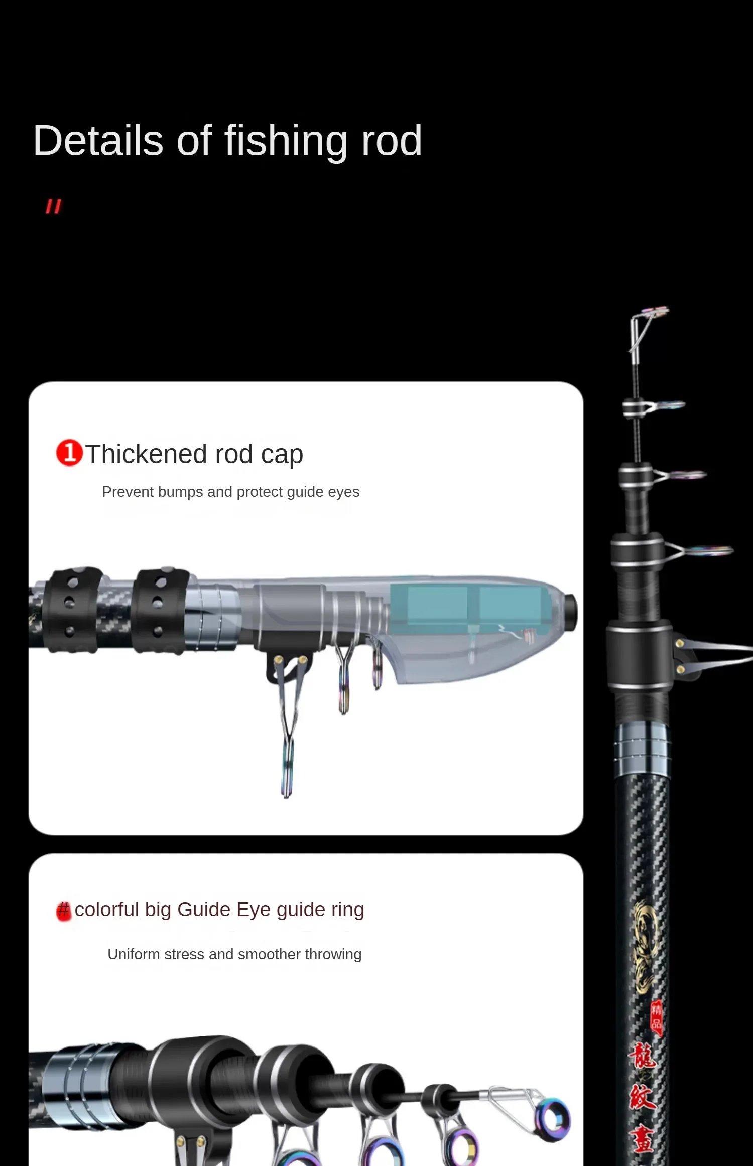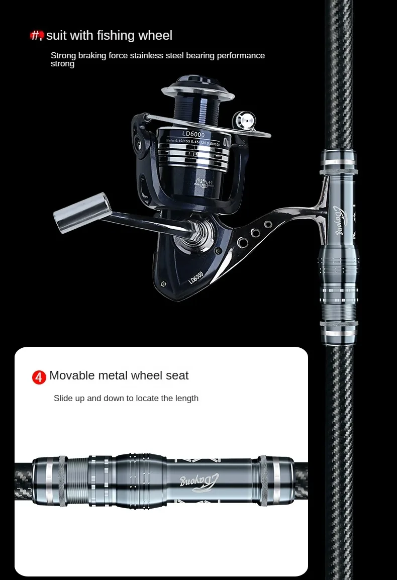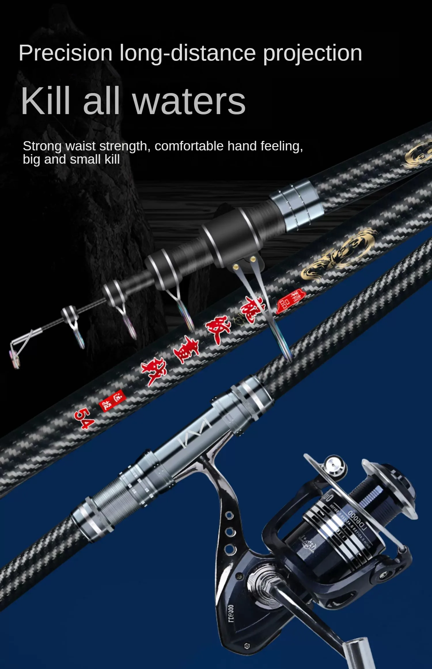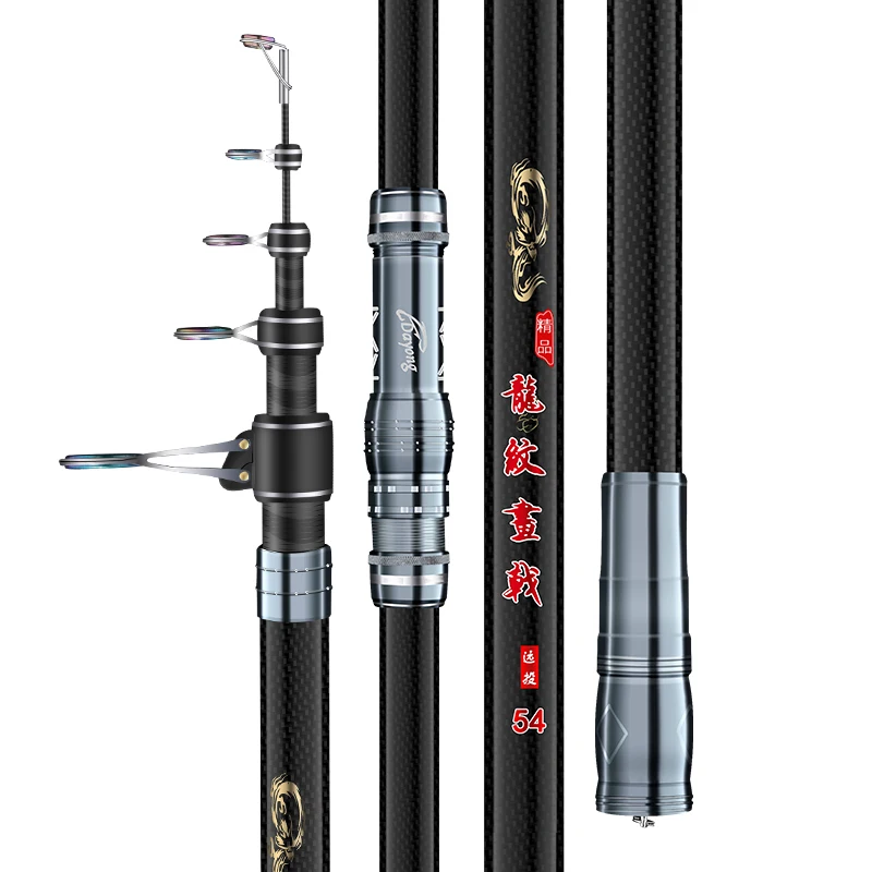 Caña de pescar giratoria telescópica de alto carbono 3,6 m 3,9 m 4,2 m 4,5 m 5m 5,4 m caña de pescar en roca para barco de mar para peces grandes