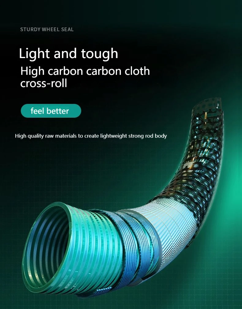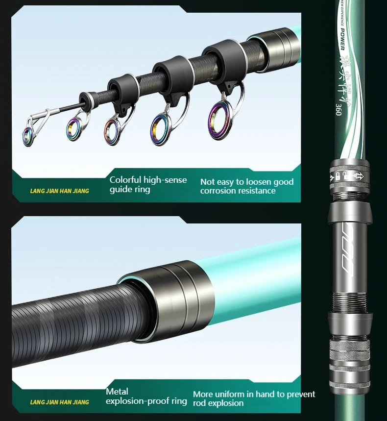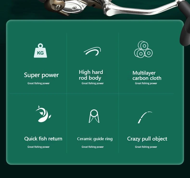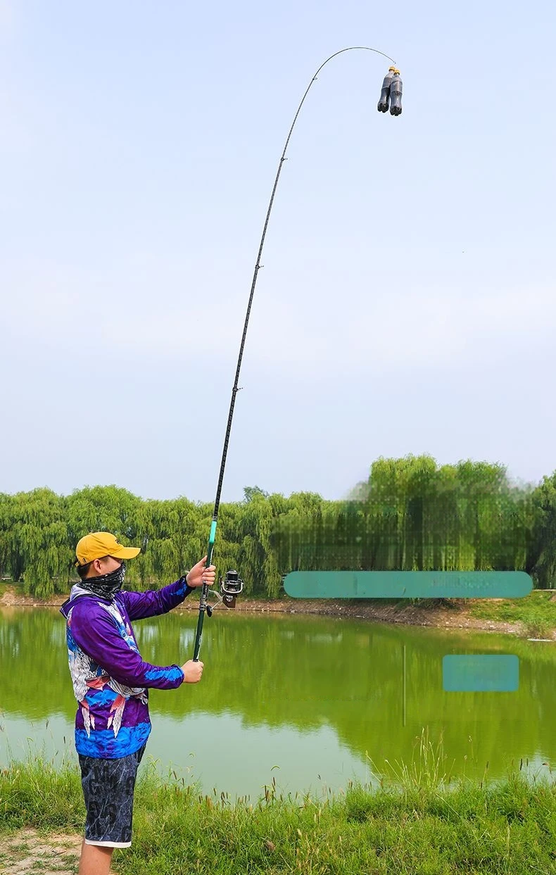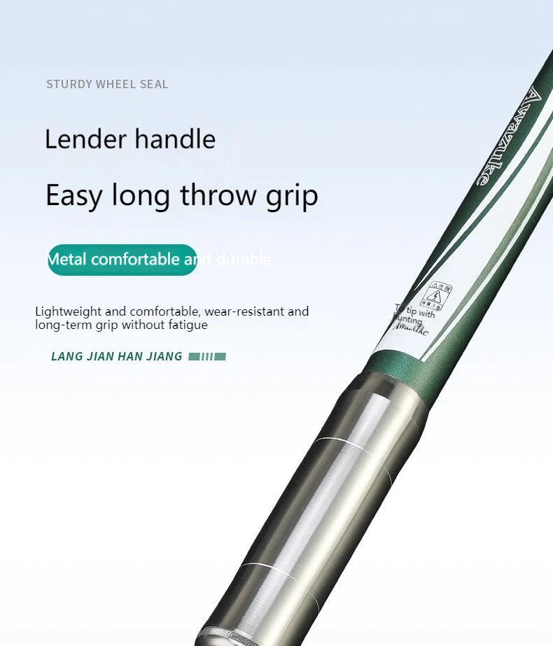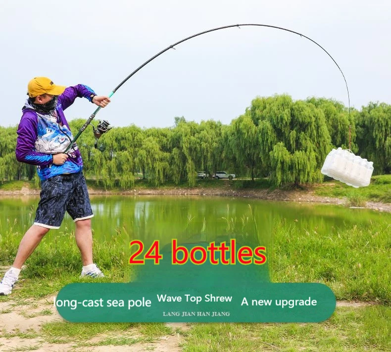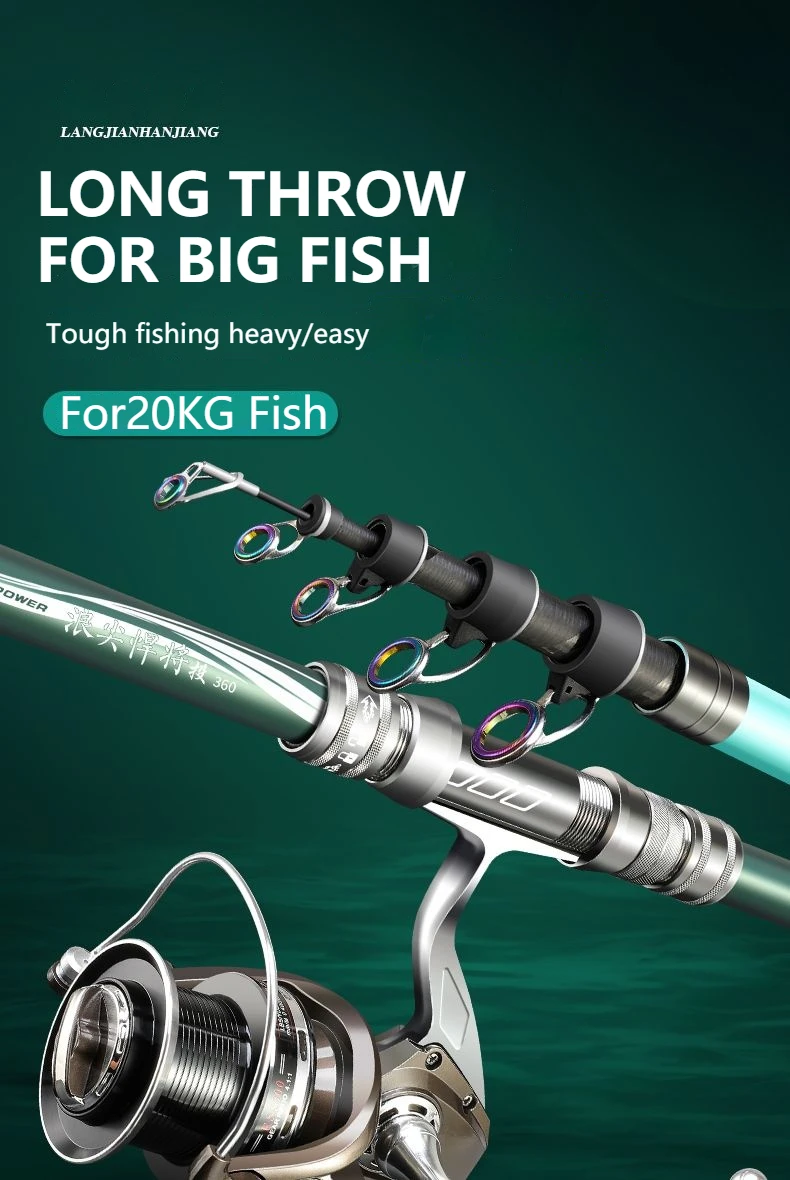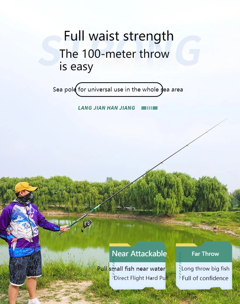 Esta caña de pescar tiene un excelente rendimiento, capaz de lanzar a una distancia de 100m y atrapar hasta 20kg de peces grandes.