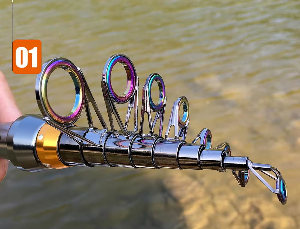 Caña de pescar de longitud ajustable para situaciones donde el equipo de pesca de tamaño completo es incómodo.