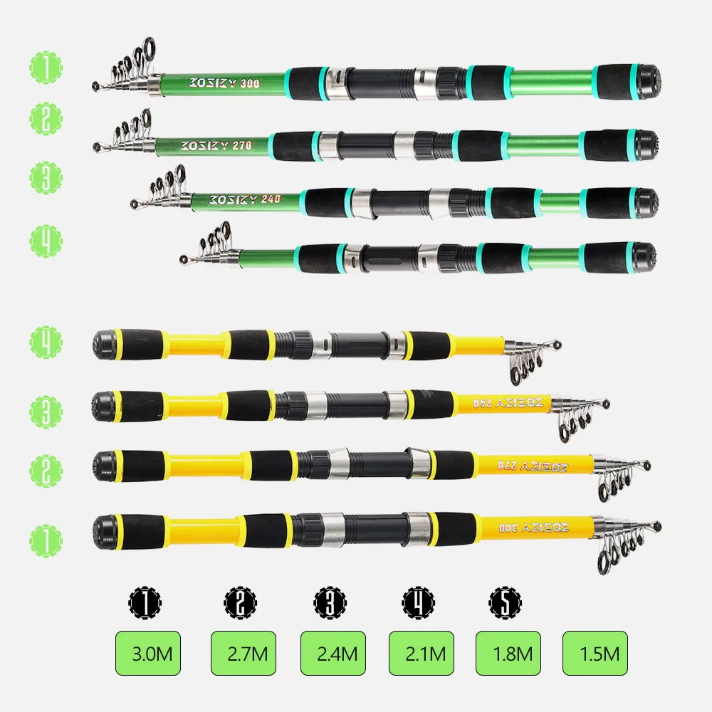 Caña de pescar telescópica de fibra de carbono para roca, alimentador giratorio, pesca de carpa con mosca, 3 m, 2,7 m, 2,4 m, 2,1 m, 1,8 m, 1,5 m, mini asiento de viaje para carrete de caña