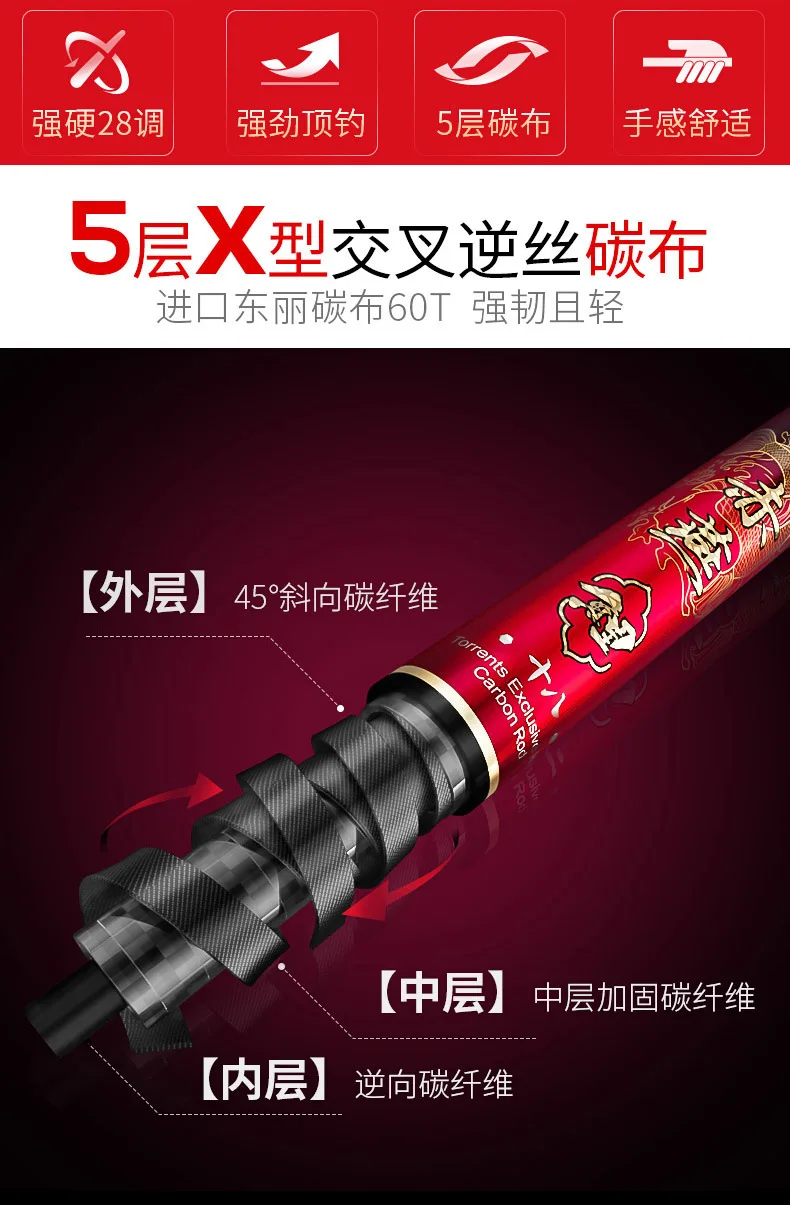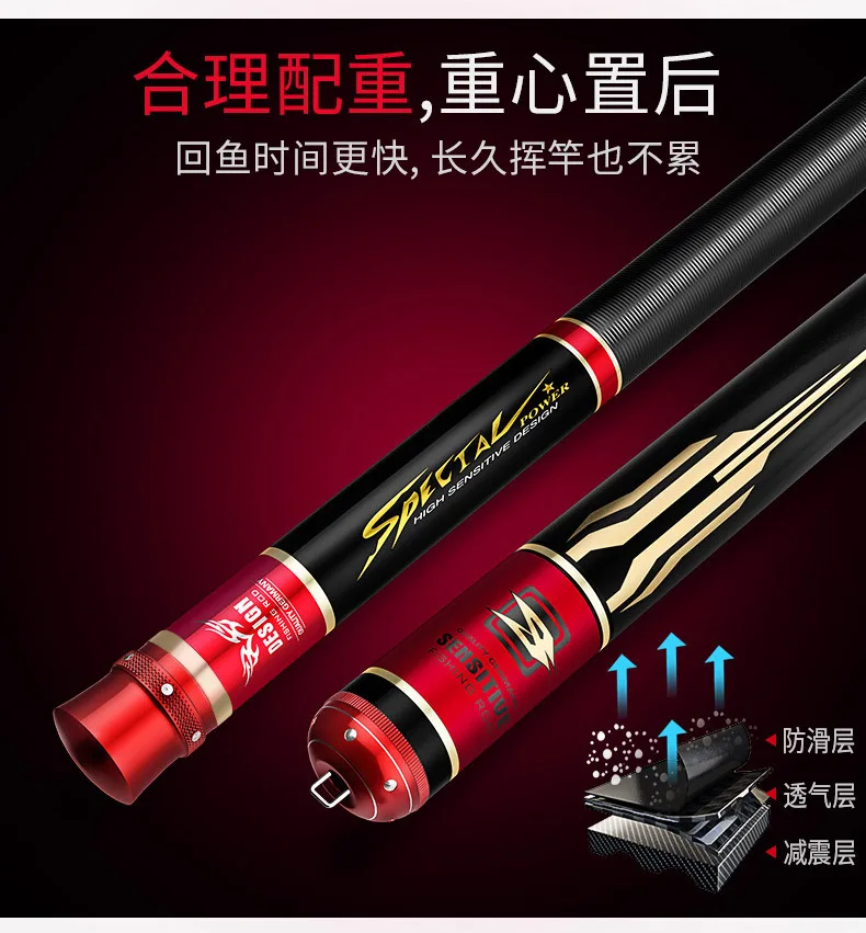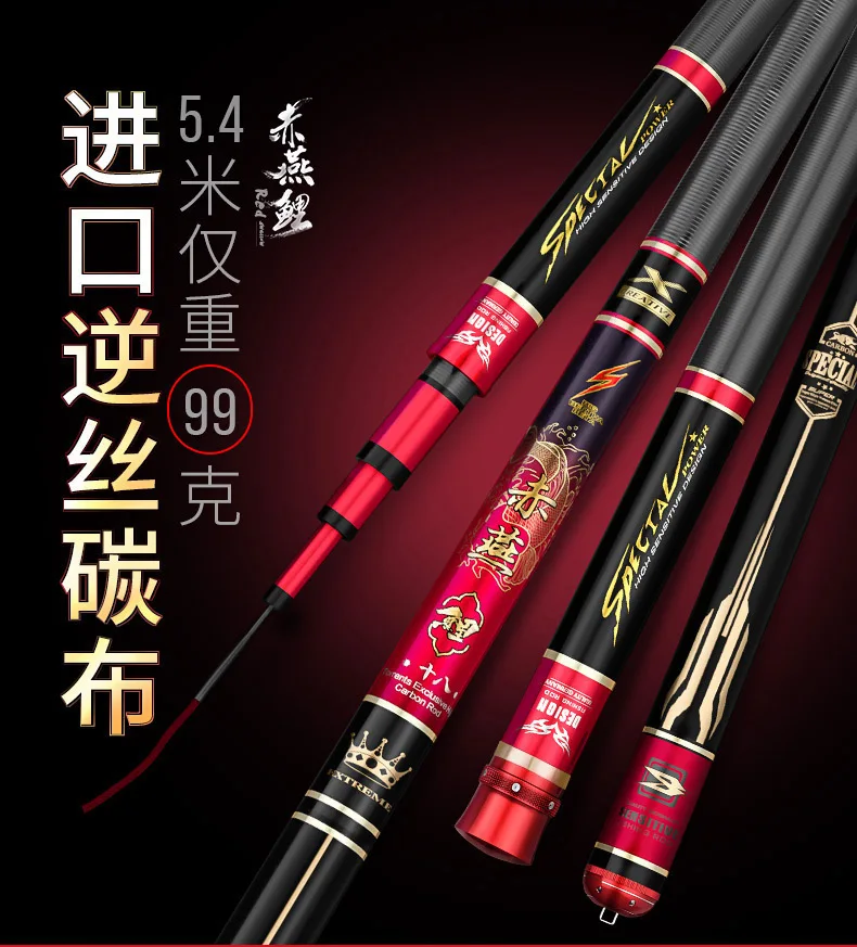 Caña de pescar de golondrina roja HZ, acción rápida, punta suave, cintura potente, buena calidad, carbonfiber 3,6 m, 3,9 m, 4,5 m, 4,8 m, 5,4 m, 5,7 m, 6,3 m