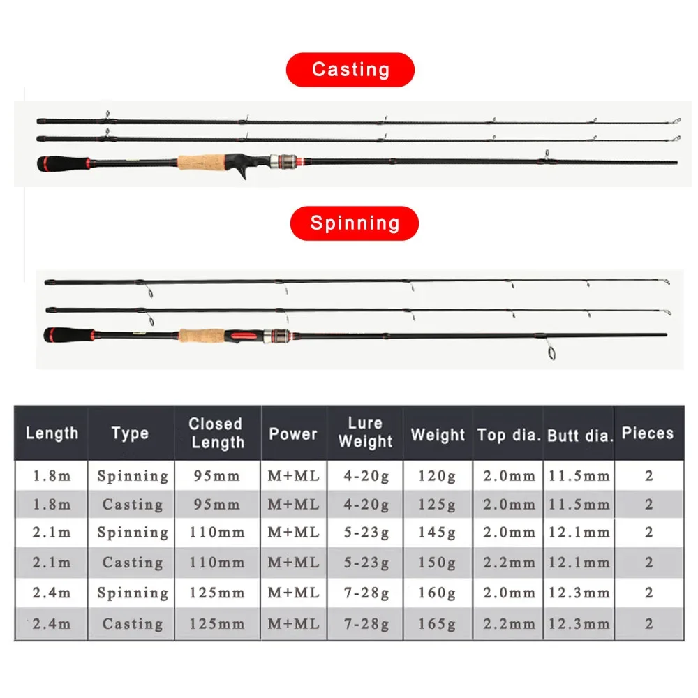 Caña de pescar Goture SHANDOW de doble punta de fibra de carbono, caña de pescar giratoria de 2 secciones, equipo de pesca de 1,8 m-2,4 m para pesca de lubina