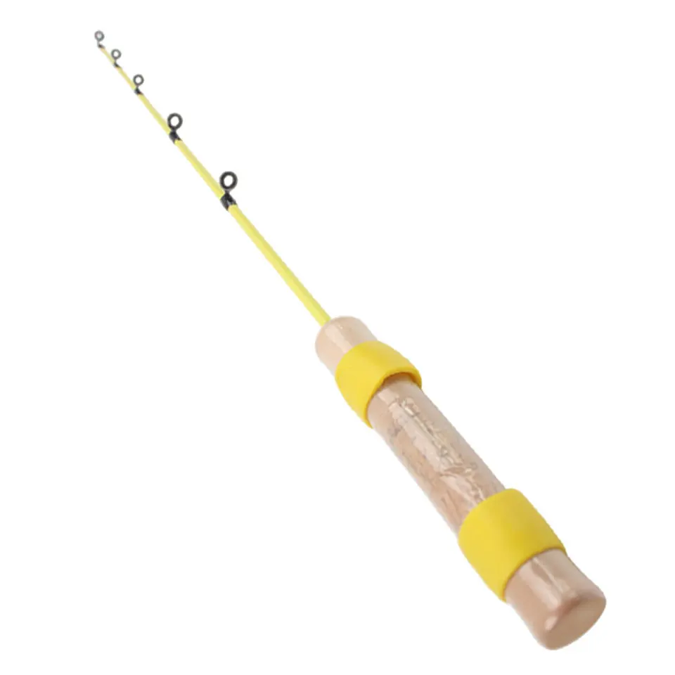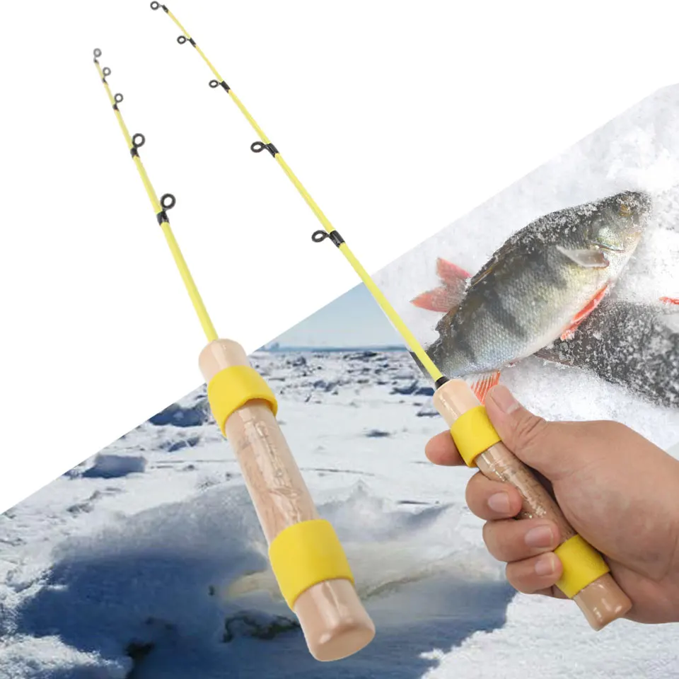 Caña de pescar en hielo amarilla portátil, fibra de carbono de 55 cm con mango similar a la madera y punta sensible, control preciso para lagos congelados