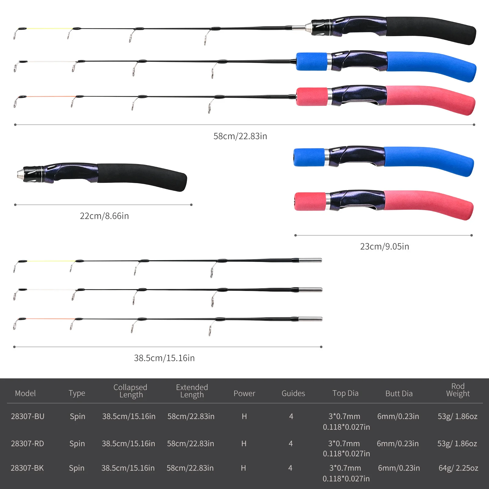 Longitud de la varilla del solider de hielo: mango suave giratorio de 58 cm rojo/negro/bue tiene varilla + juego de carretes