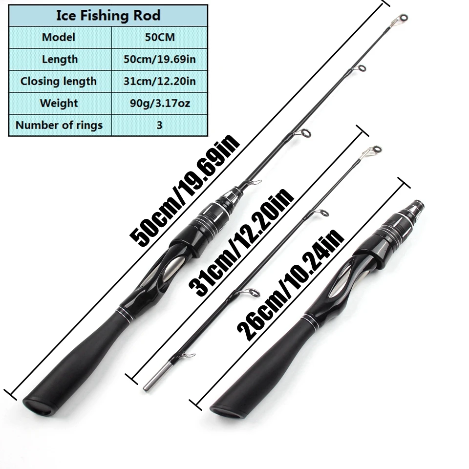 Caña de Pesca en Hielo Ultraportátil de 50 cm – Máxima Sensibilidad para la Pesca Invernal