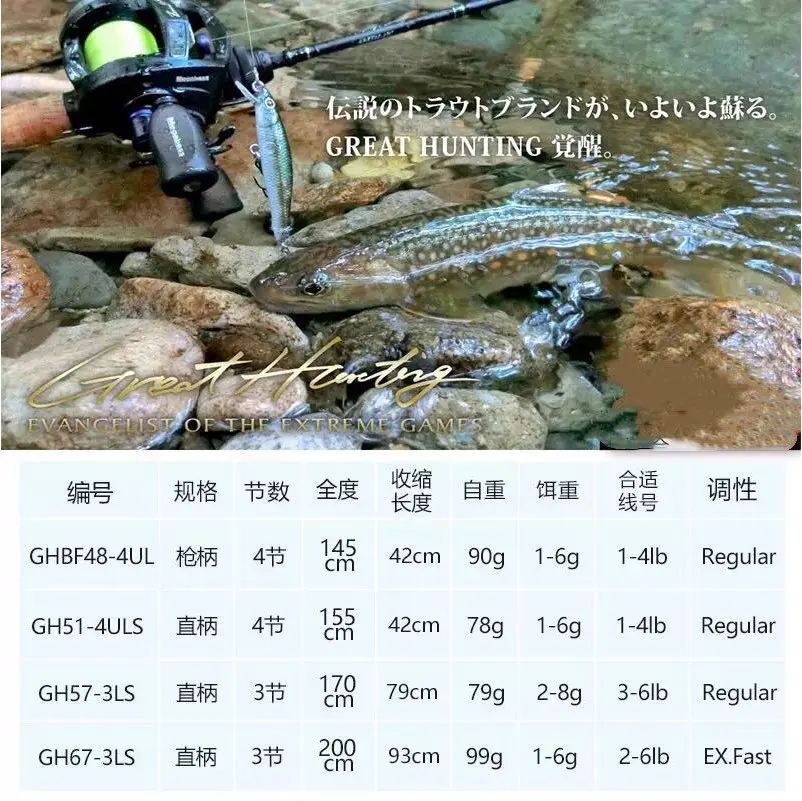 Caña de pescar japonesa Megabass Stream trucha GH 484 Ma Kou Gan Micro Object UL Lu Ya Gan, caña de pescar de rayas blancas