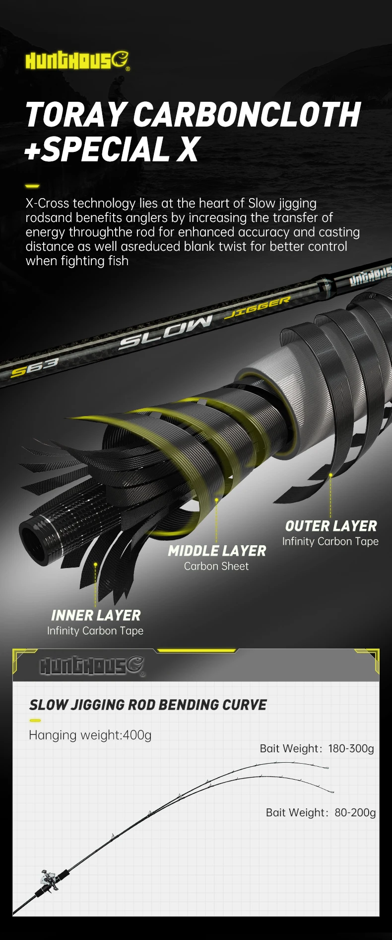 Hunthouse 1.5 Uds 1.9m M/ML peso del señuelo 80-300g caña de pescar de Jigging lento de fundición piezas de Fuji de fibra de carbono agua salada