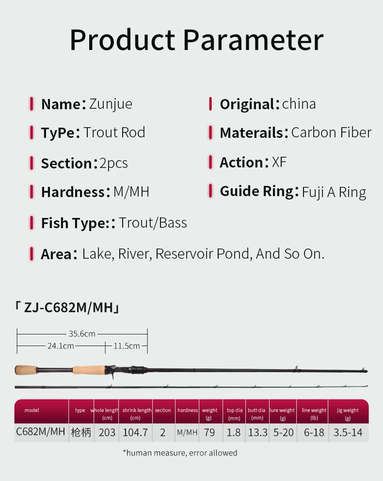 C682M/MH 203CM 104,7cm 1,8mm 13,3mm 79g 5-20g 6-18lb