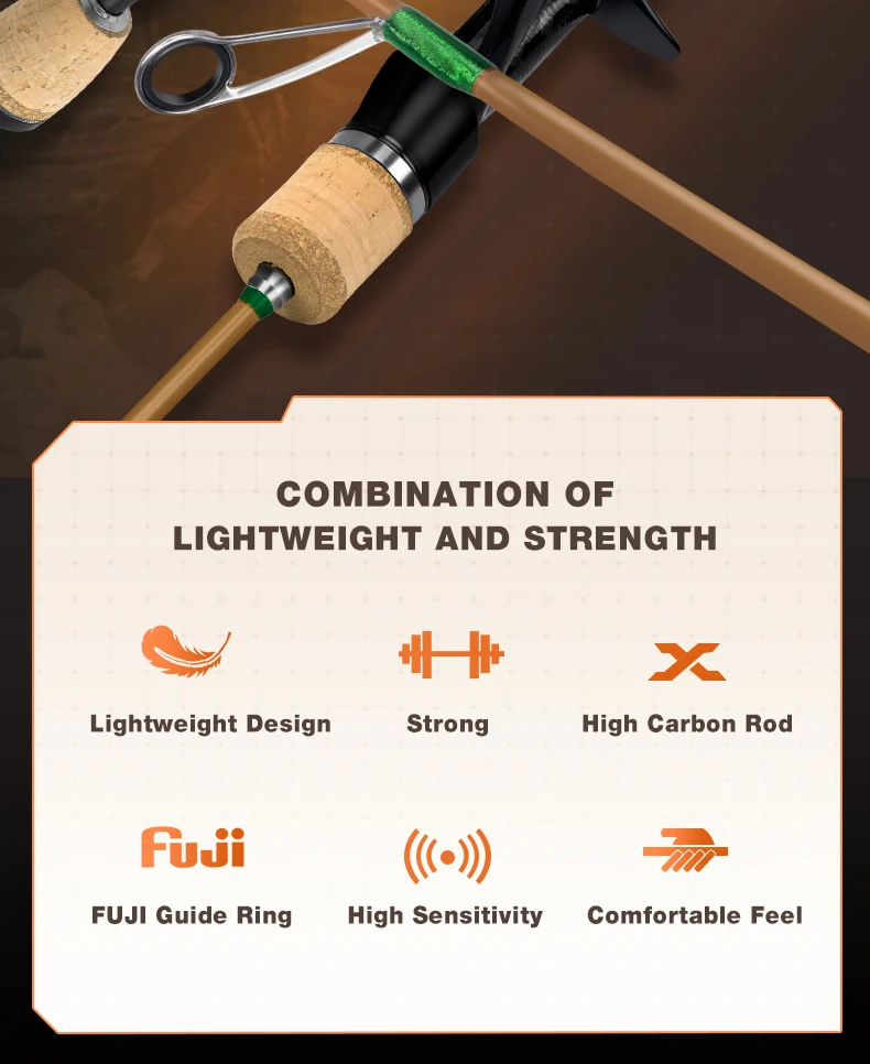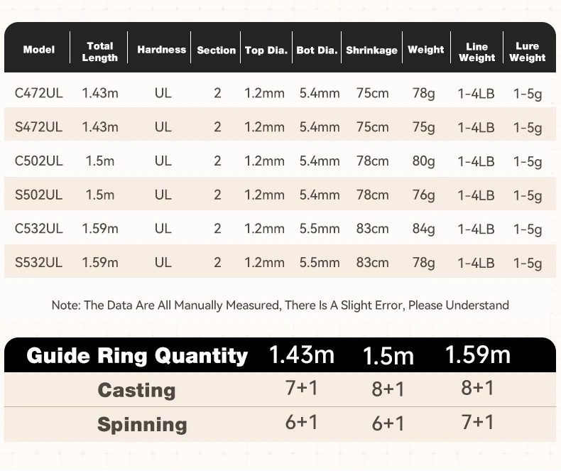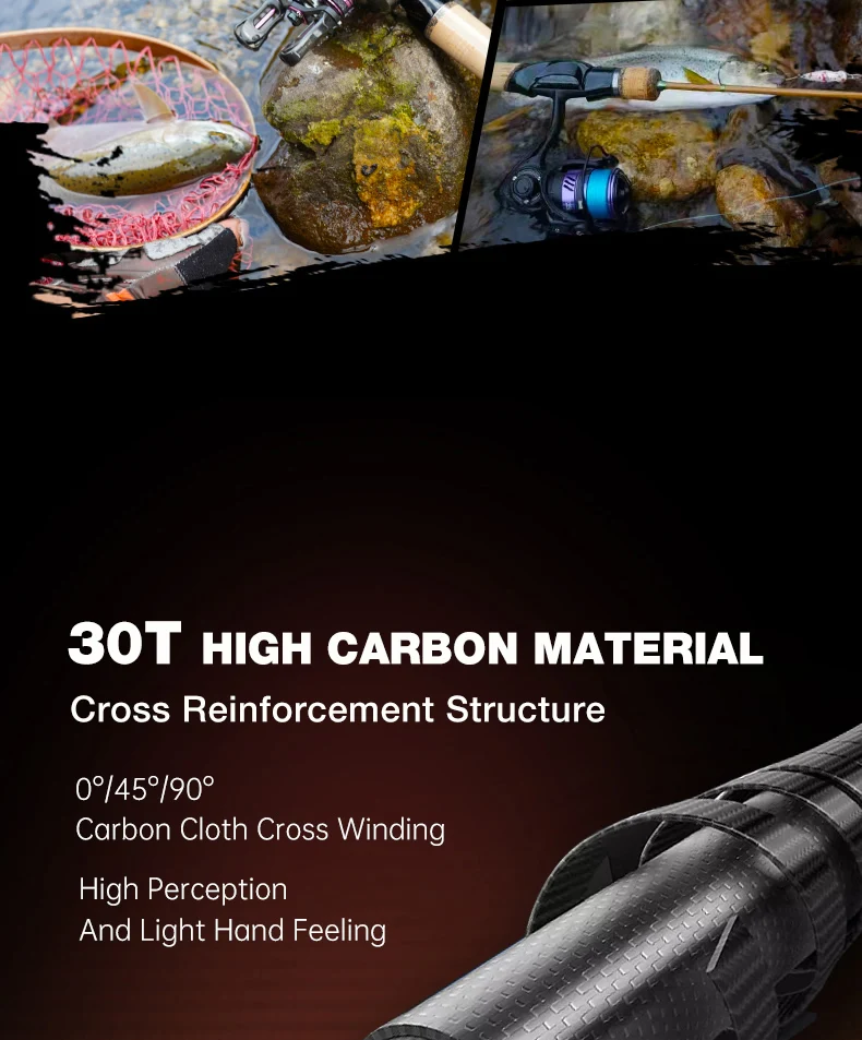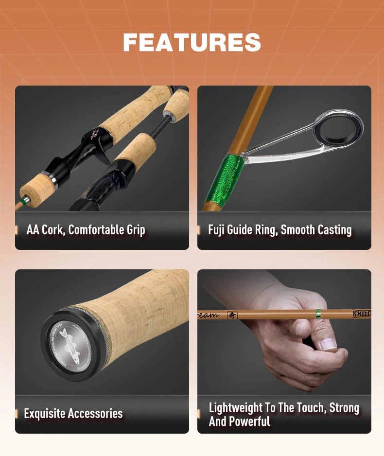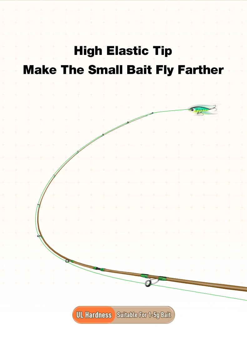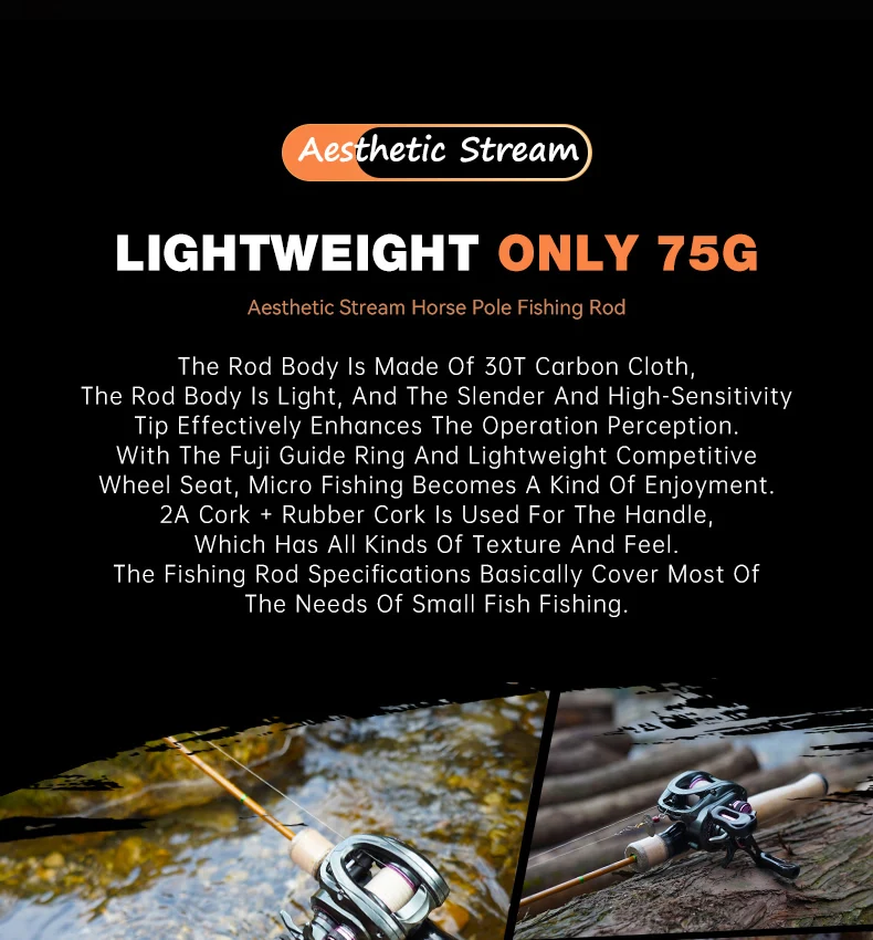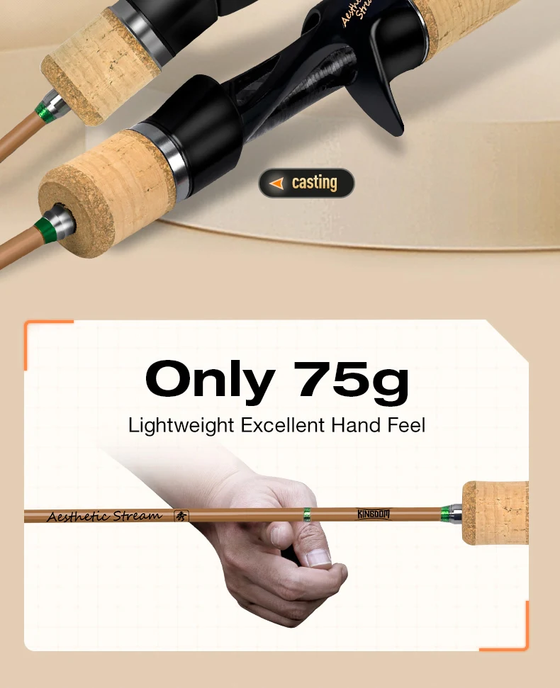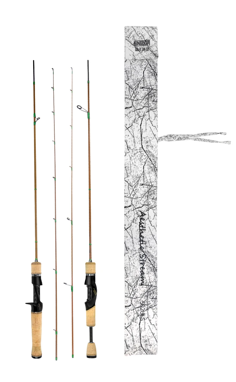 Caña de pescar Kingdom, corriente estética ultraligera, 76g, UL, 1,43 m, 1,5 m, 1,59 m, 2 secciones, cañas de pescar de fibra de carbono de fundición giratoria