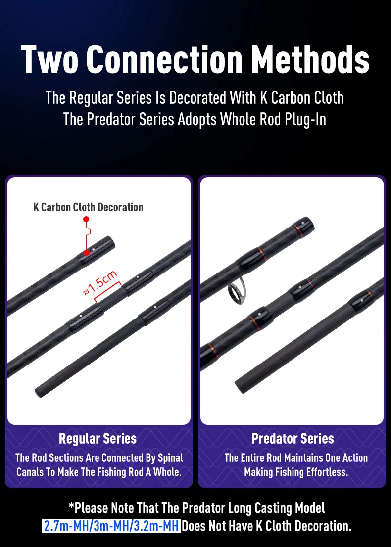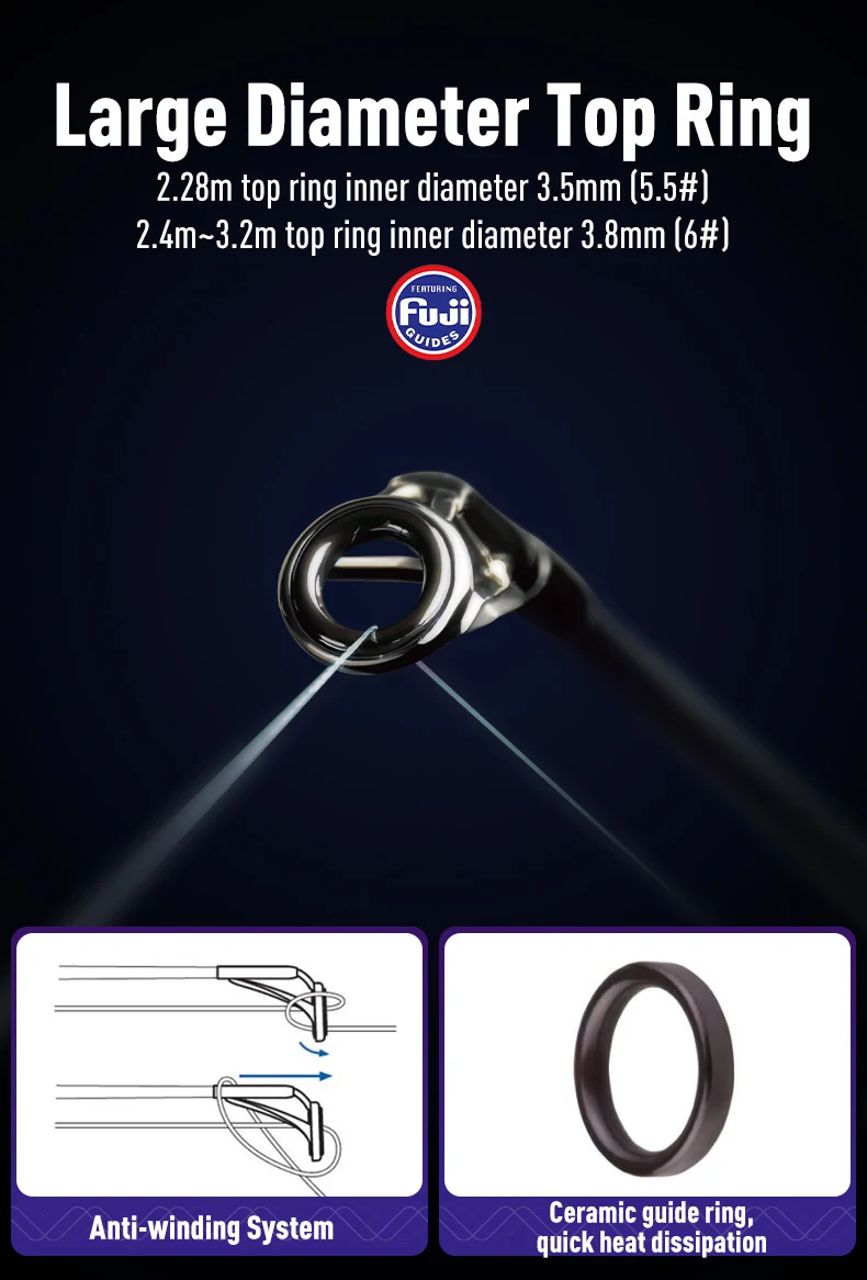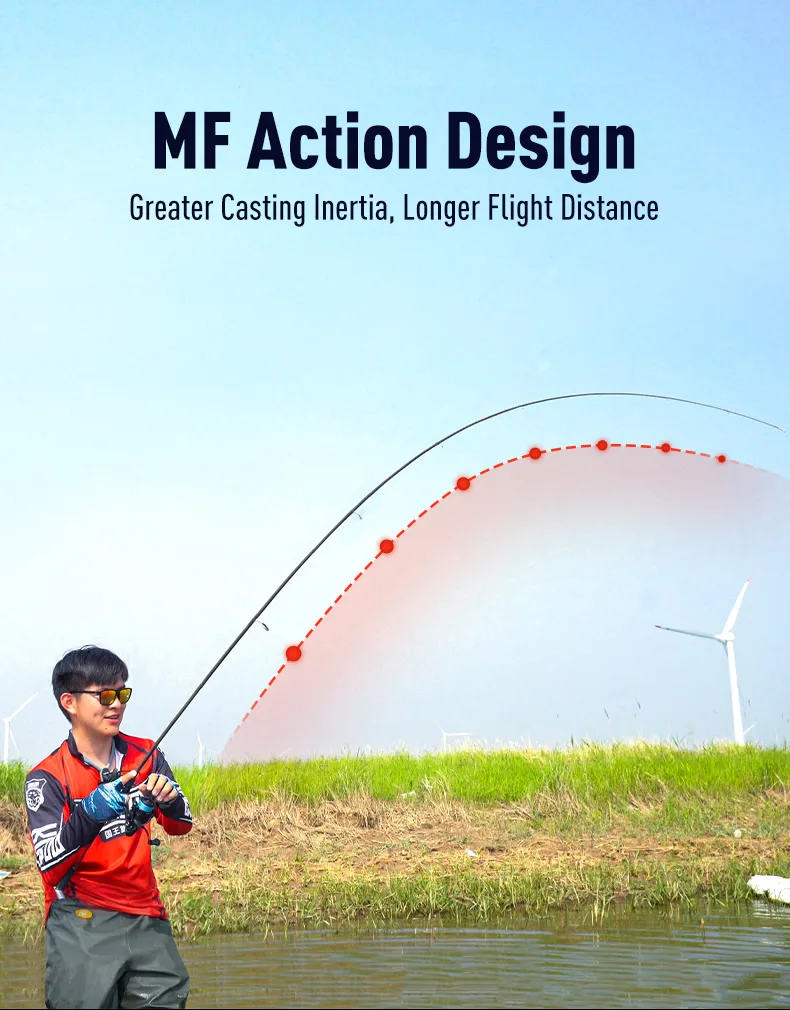Medium-Fast Action ofrece una mayor inercia inicial de lanzamiento.Lanzar fácilmente señuelos que van desde 3 g hasta 50 g en largas distancias para desafiar peces grandes.