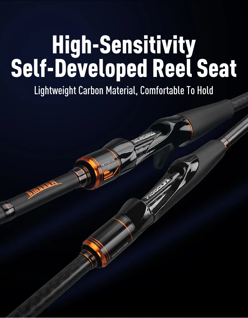 La capa de carbono híbrida de tejido inverso interior-exterior 40+30T proporciona una columna vertebral potente y estable, luchando sin esfuerzo al lubina y al pez mandarín de largo metro.
