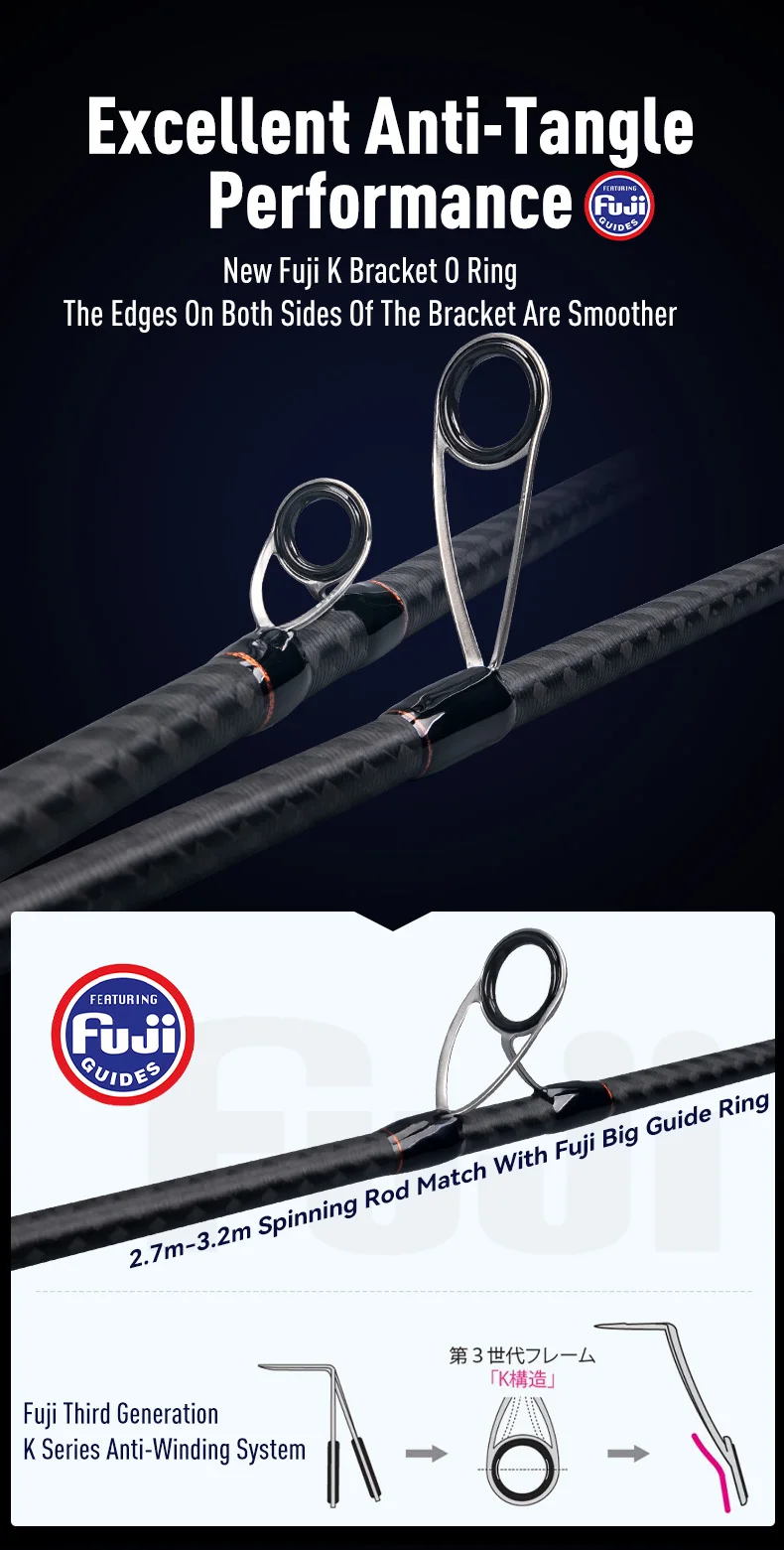 Las nuevas guías de junta tórica Fuji serie K reducen significativamente la resistencia de la línea, permitiendo que sus señuelos vuelen más lejos.