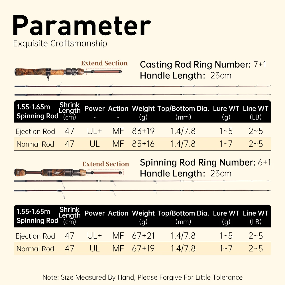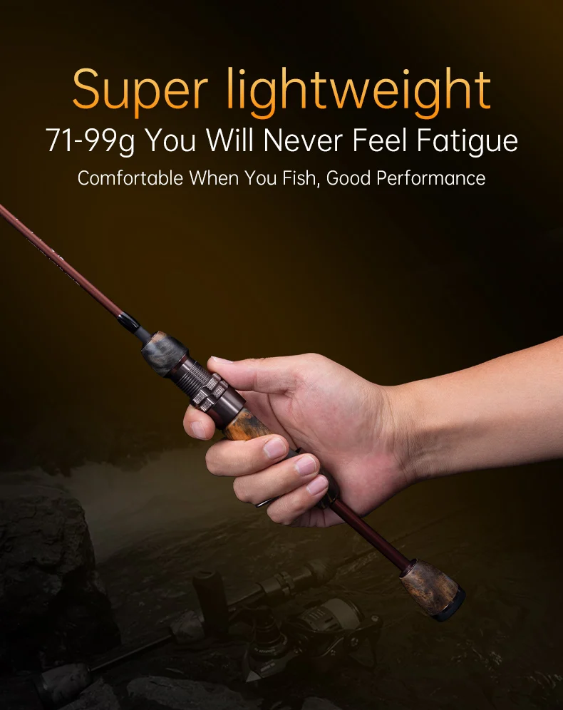 8. ¡Con un peso de sólo 71-99 g! Más ligero que la fibra de vidrio, ¡no te sentirás cansado después de un día de lanzamiento! Con un diámetro de mina de 1,4 mm y un diámetro de mina de 7,8 mm, cubre cebos de 1 g a 7 g y lanza de 2 lb a 5 lb. ¡Esta es la arma de pesca de arroyo definitiva!