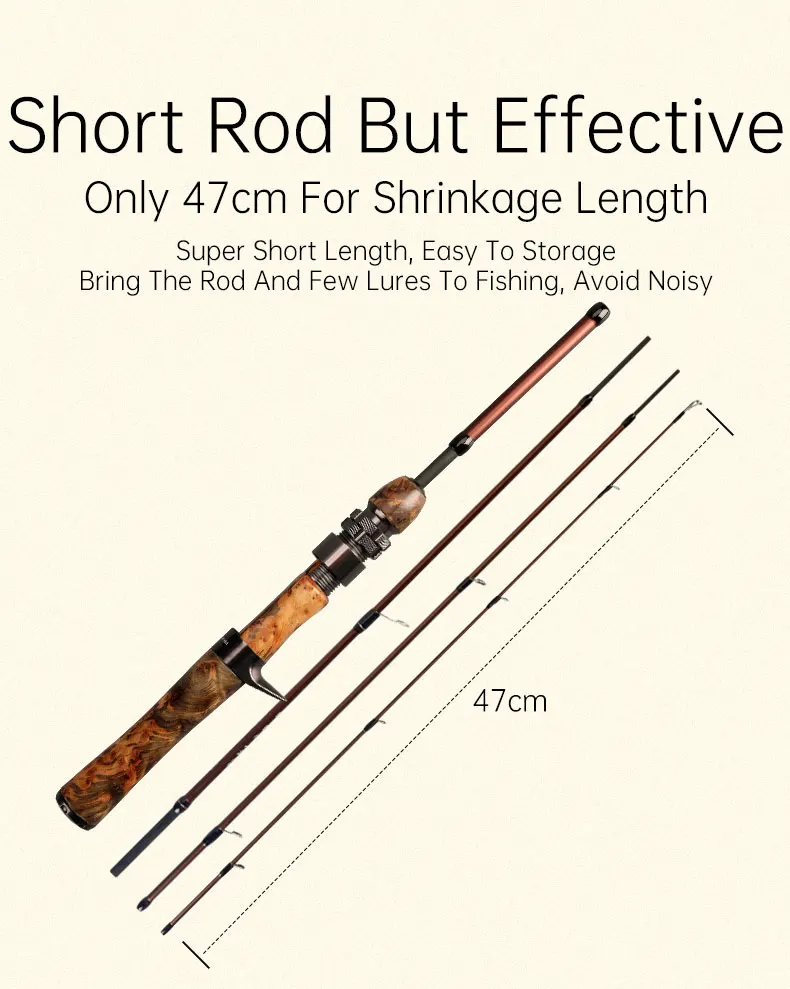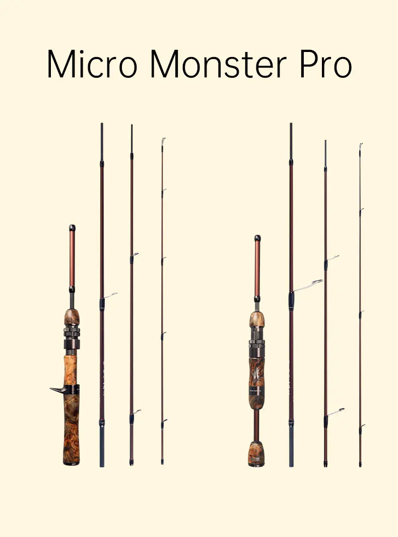 1. ¡Una varilla "Slingshot" de 4 secciones + diseño de varilla "regular"!Un cuerpo de varilla de oro oscuro y un microguía en A Fuji permiten un lanzamiento preciso, ¡incluso lanzando 1 g de señuelo cien metros!¡Haz transmisiones de montaña tu escenario personal!