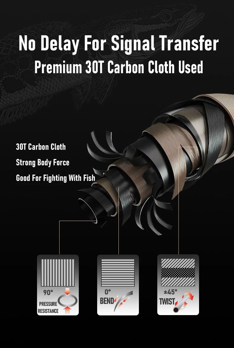 2.Tejido de fibra de carbono 30T para una dureza superior y retención de peces, evitando que los peces se resbalen.