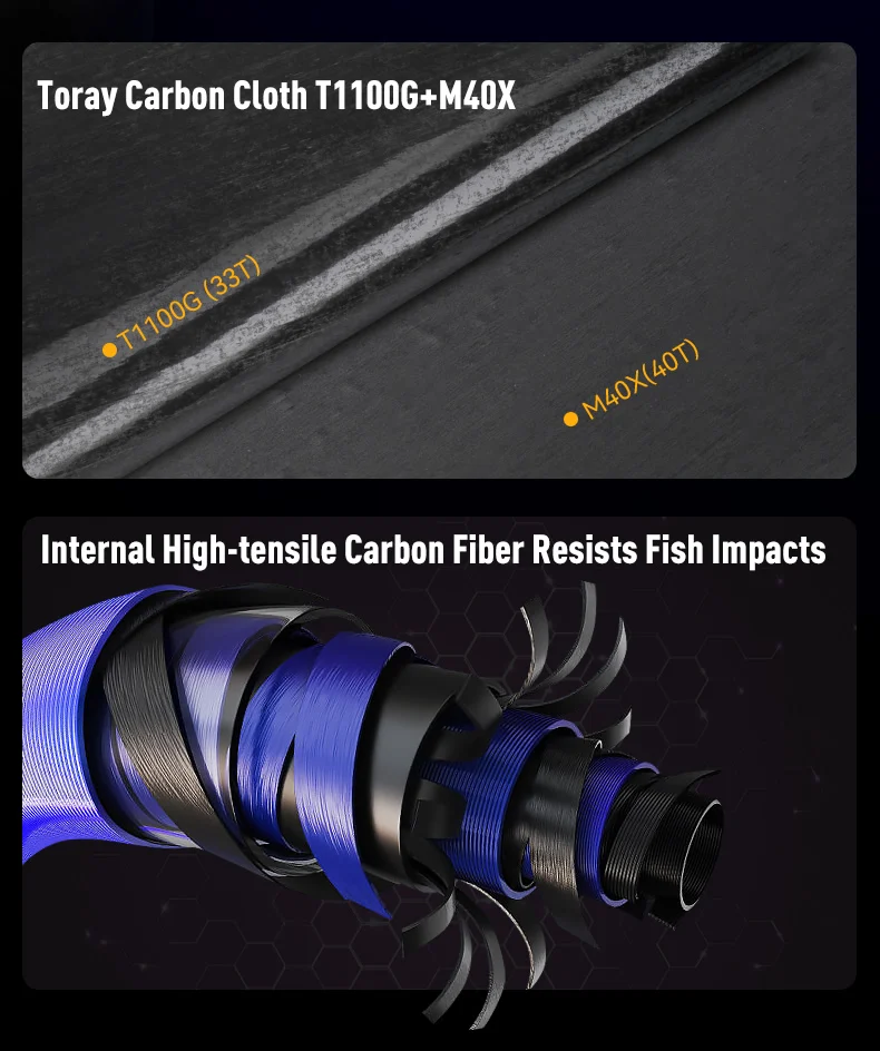 4.Fabricado con fibra de carbono japonesa TORAY T1100G y M40X para mayor durabilidad.