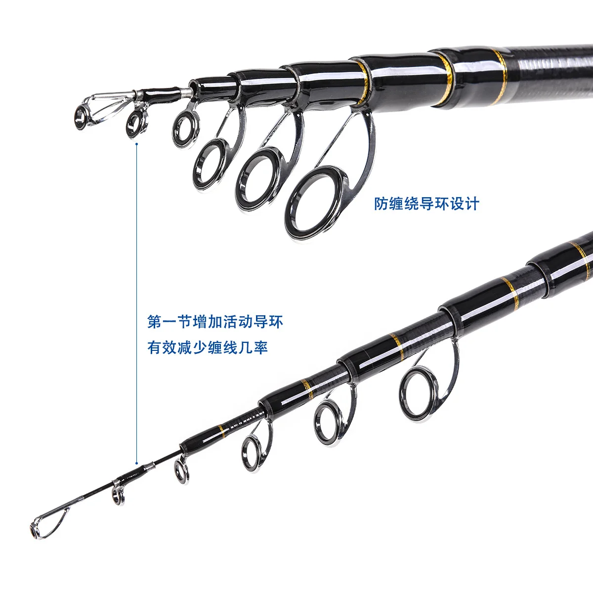 1: Toda la caña de pescar está hecha de material importado con alto contenido de carbono y está hecha mediante un proceso en forma de X, por lo que esta caña es muy resistente y liviana.