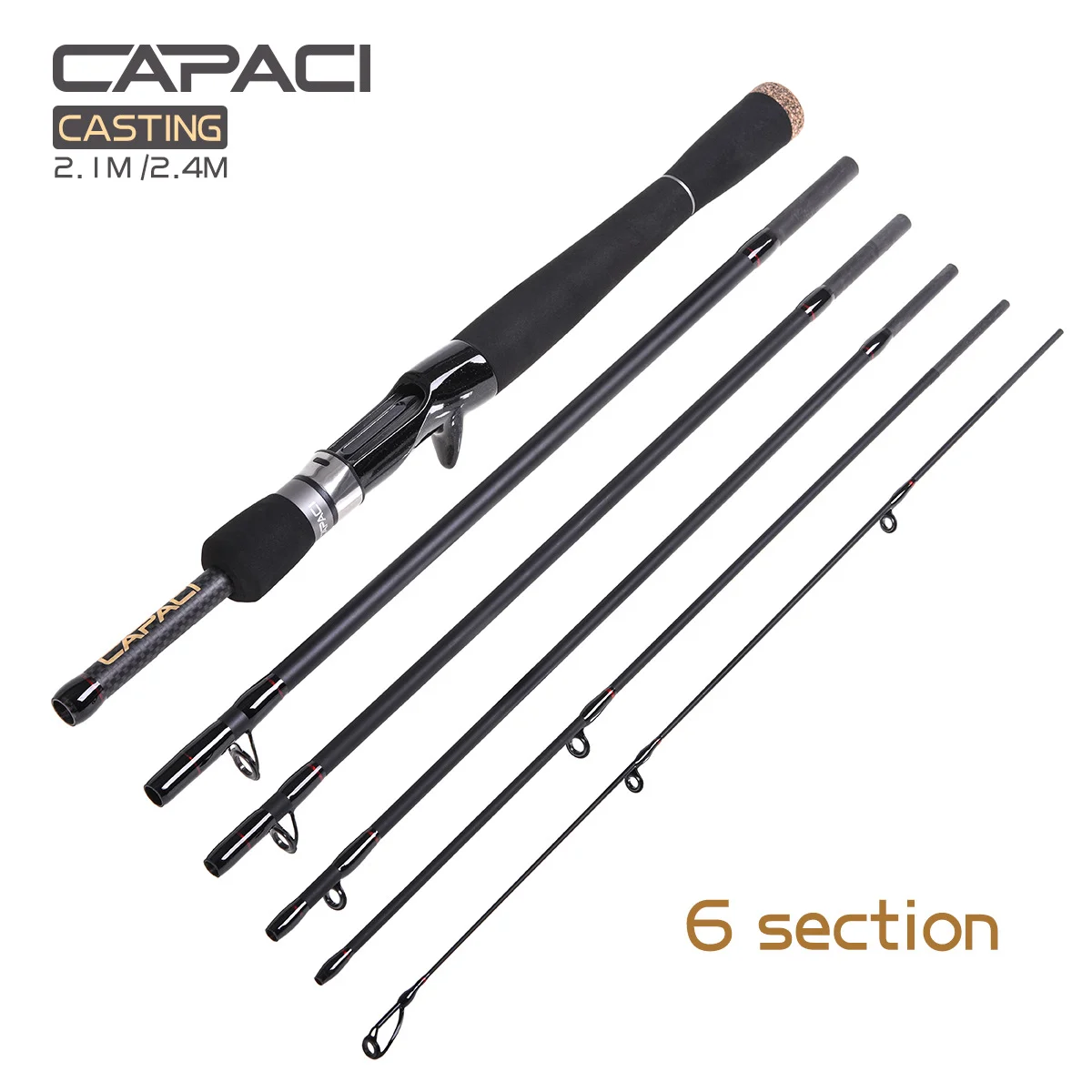 6: Esta caña tiene caña giratoria y de fundición, tiene 1,8 M/2,1 M/2,4 M/2,7 M. Puede cumplir con los requisitos de la mayoría de las personas para cañas de pescar.