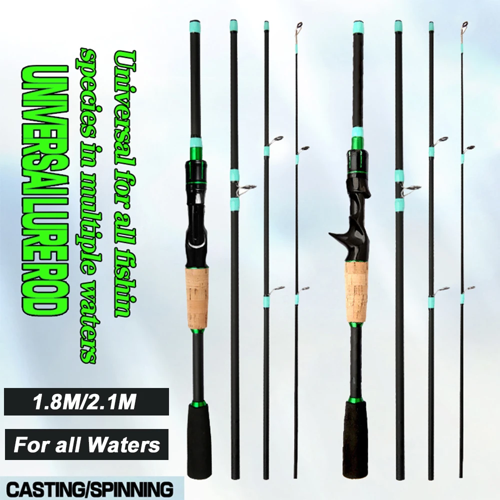 Caña de pescar ligera, 1,8 m/2,1 m, señuelo de fundición/giratorio, 4/5 secciones, cuerpo de fibra de carbono, cañas de Jigging, Pesca de carpa