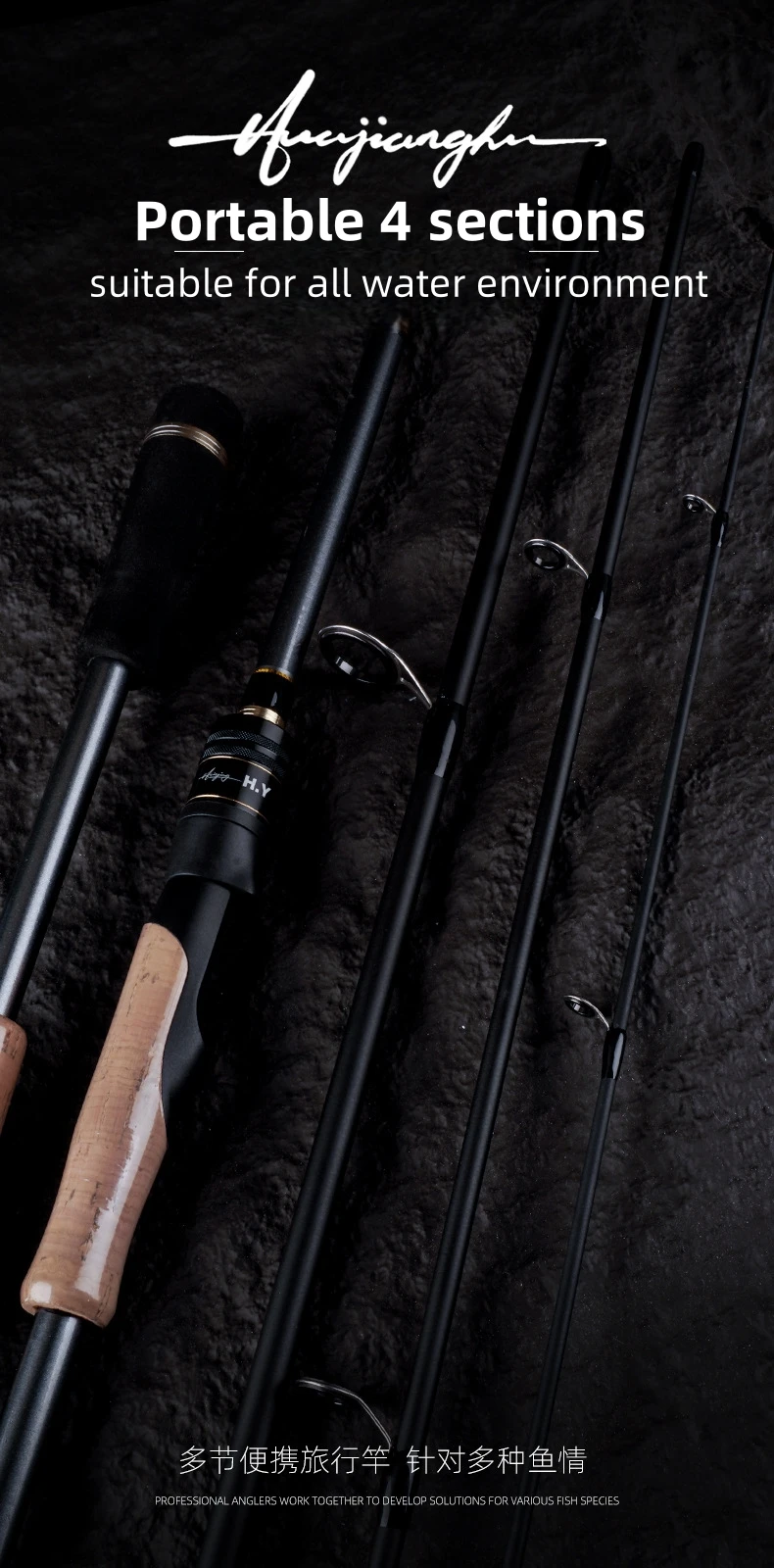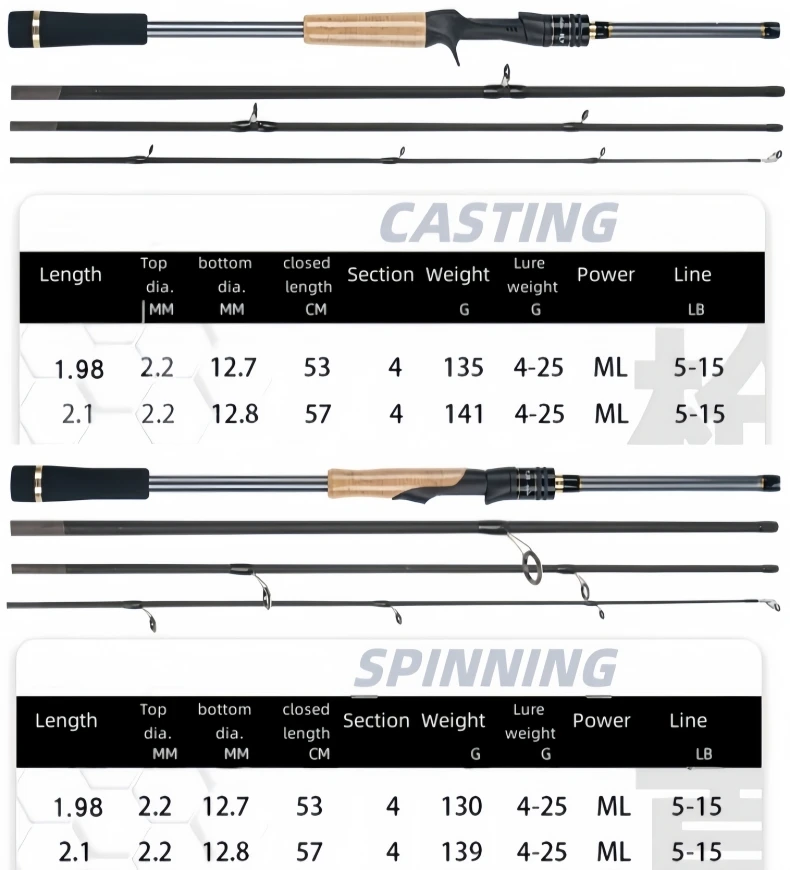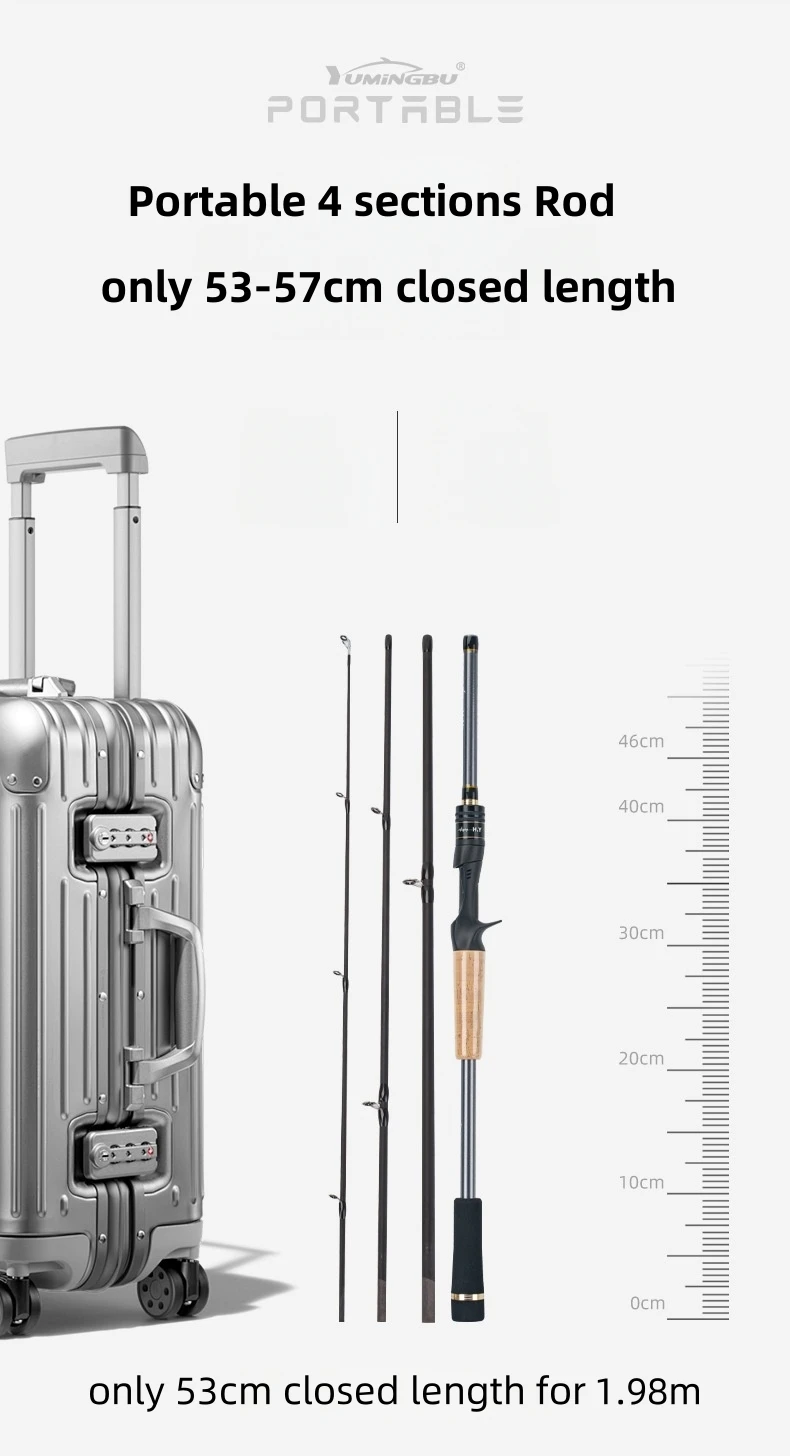 Caña de pescar de viaje ML de carbono de 4 secciones