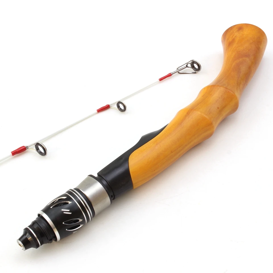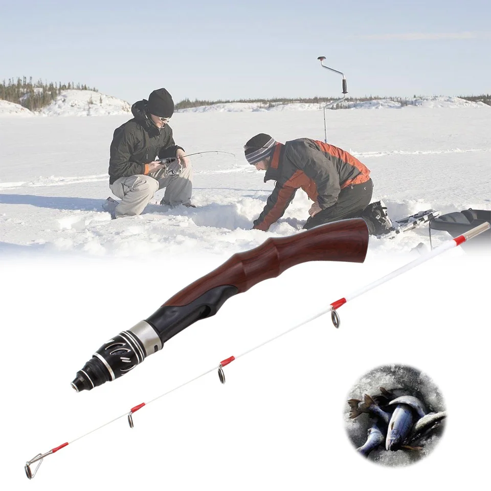 Caña de pescar con mango de madera para invierno, 2 secciones de longitud, 63cm, juego de caña giratoria, aparejos de pesca cortos, novedad