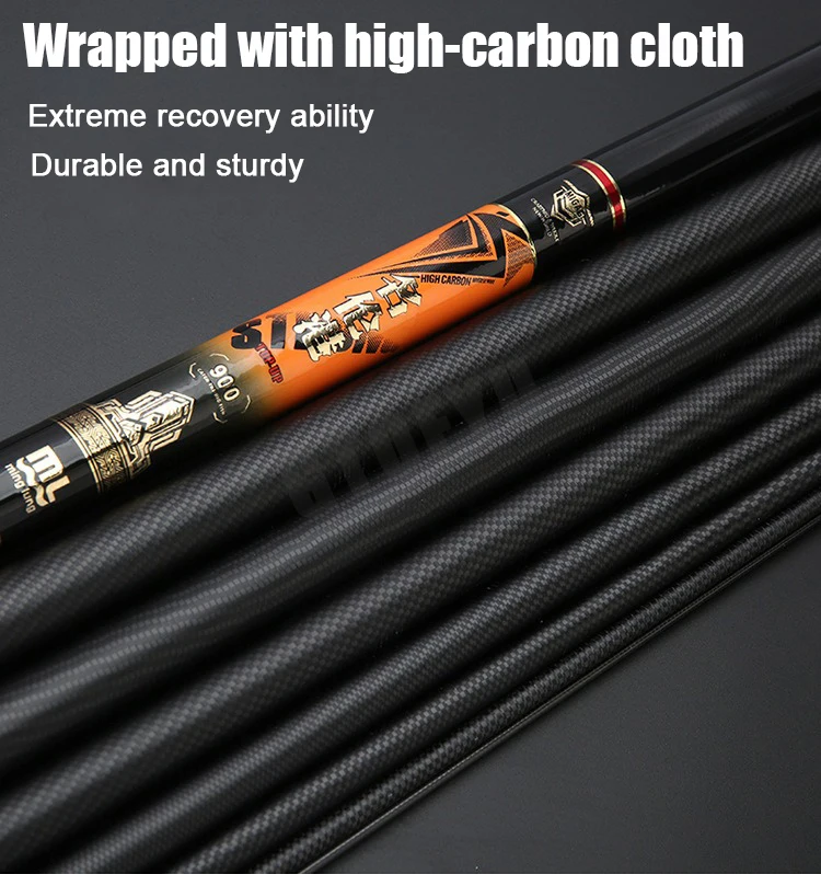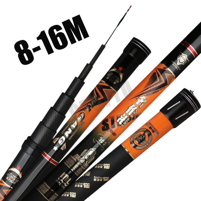Caña de pescar de mano de fibra de carbono, caña de pescar telescópica de alta calidad, súper ligera, larga y dura, 8M/10M/12M/14M/15M/16M