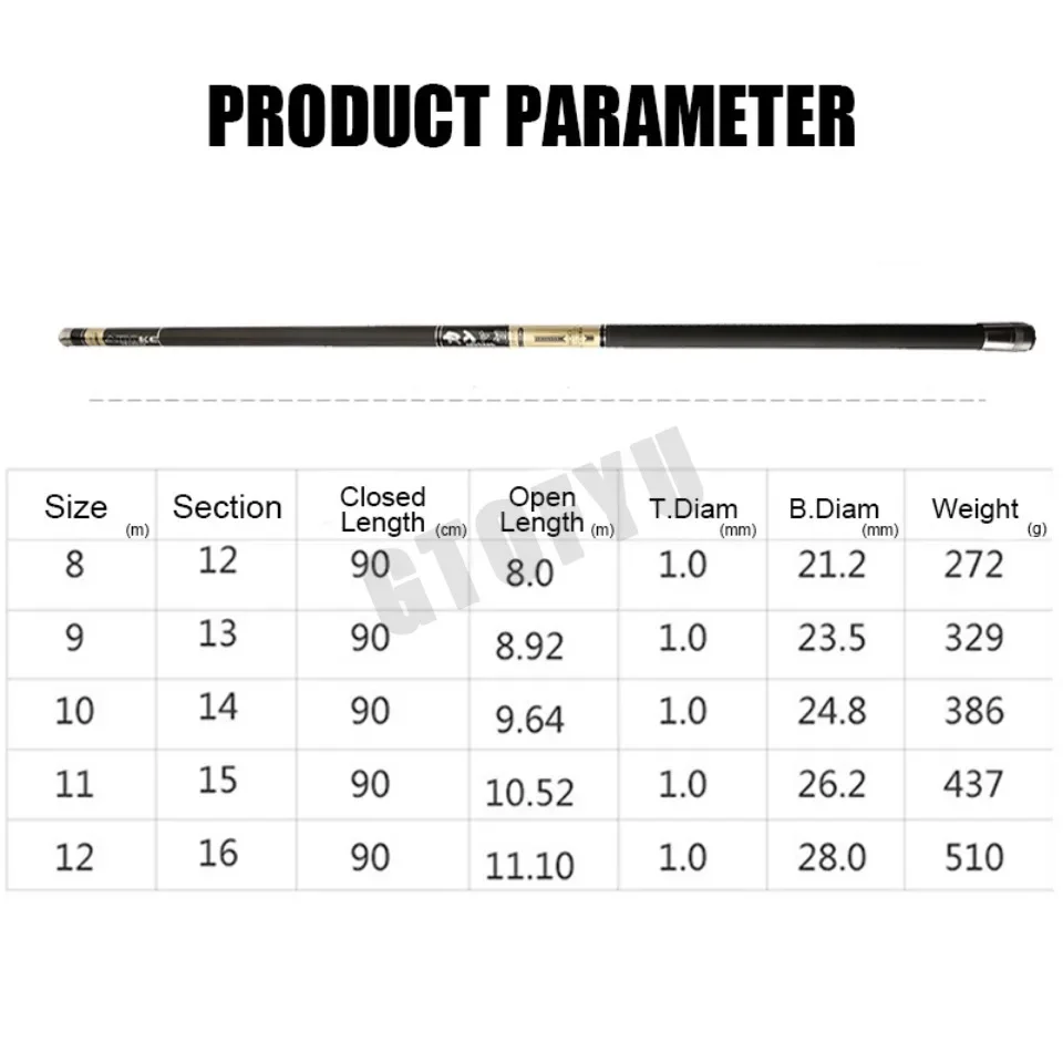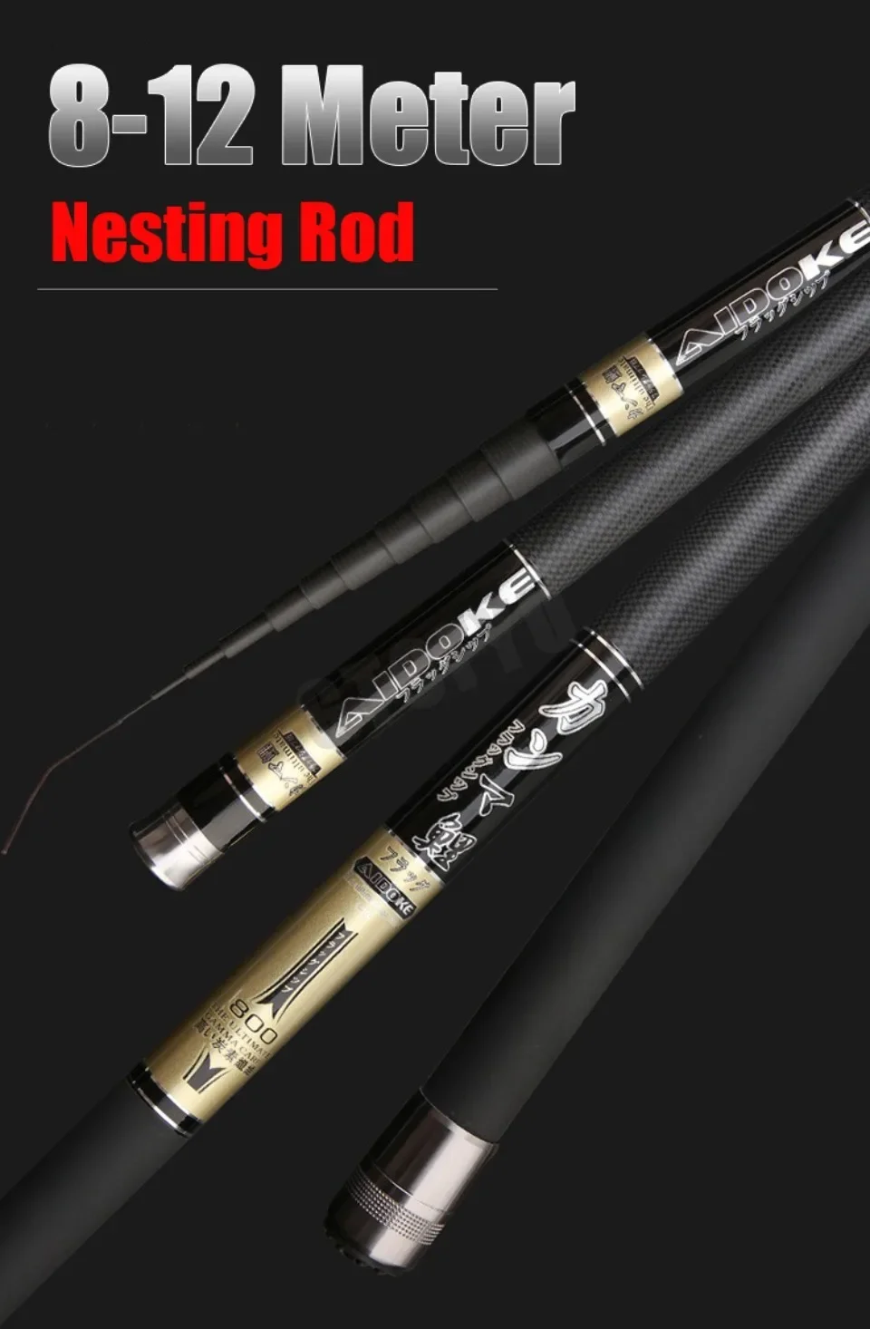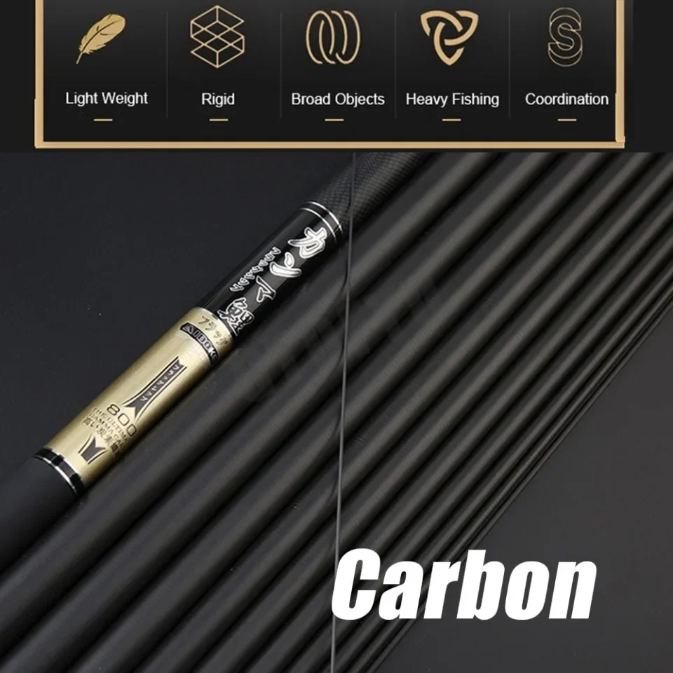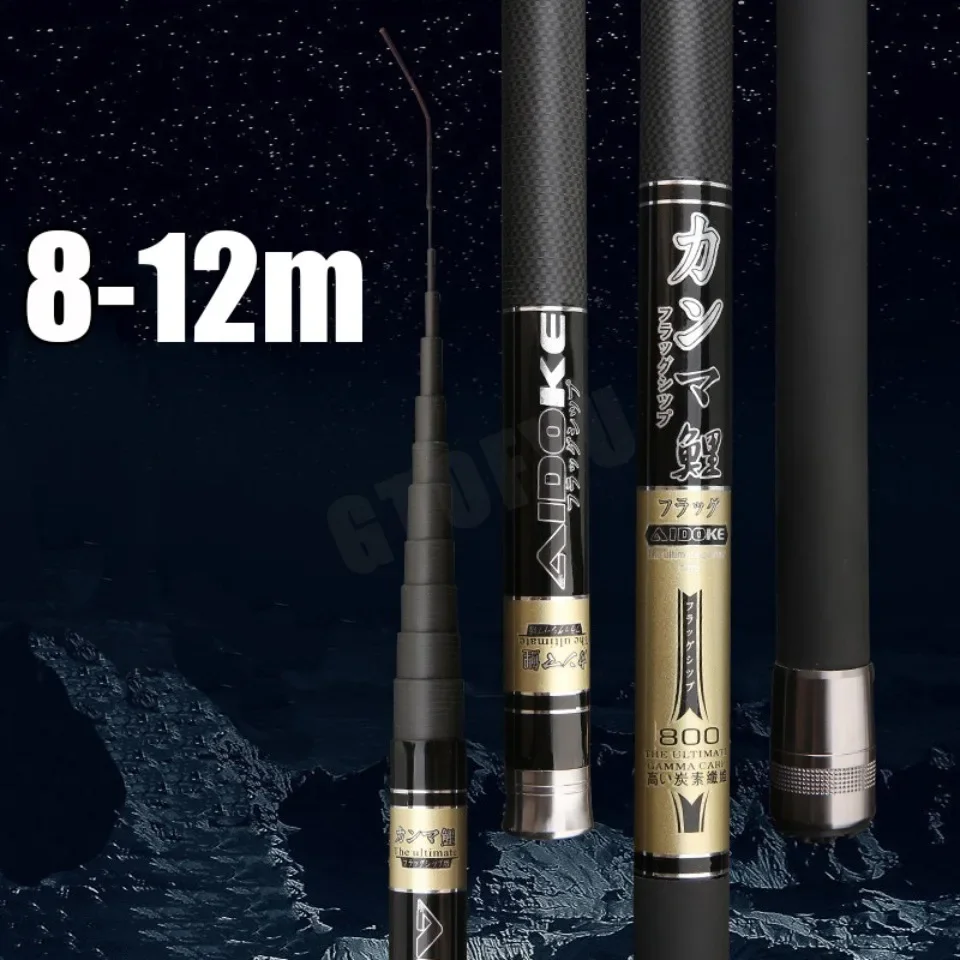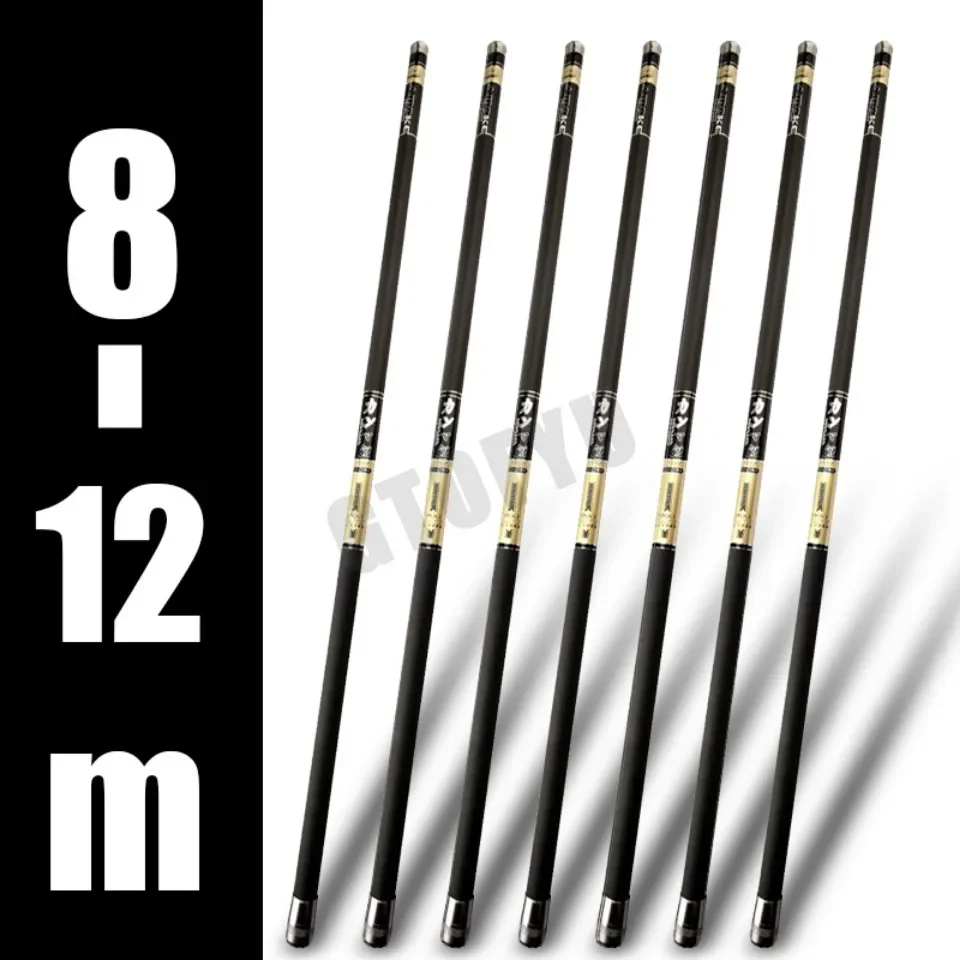 Caña de pescar de mano de fibra de carbono dura, súper ligera, larga, 8M/9M/10M/11M/12M, caña de pescar telescópica de alta calidad