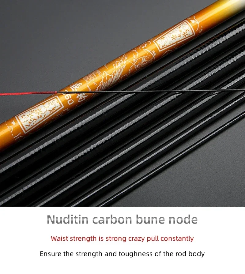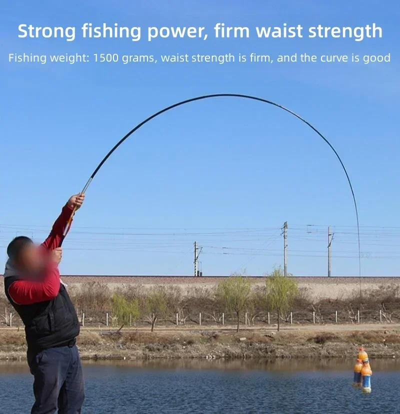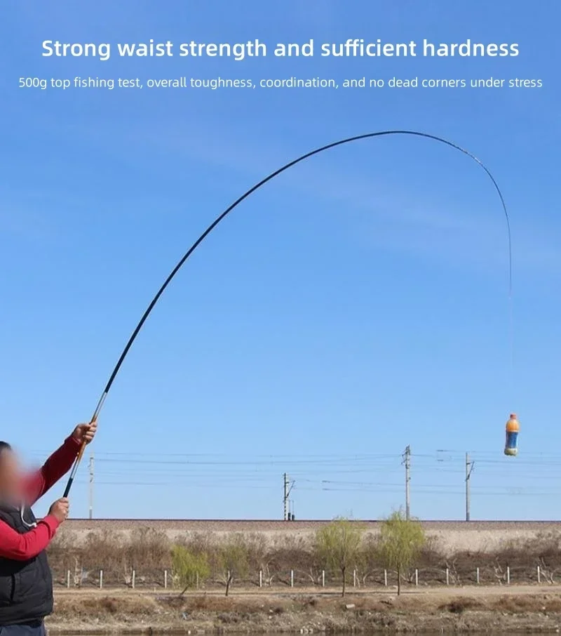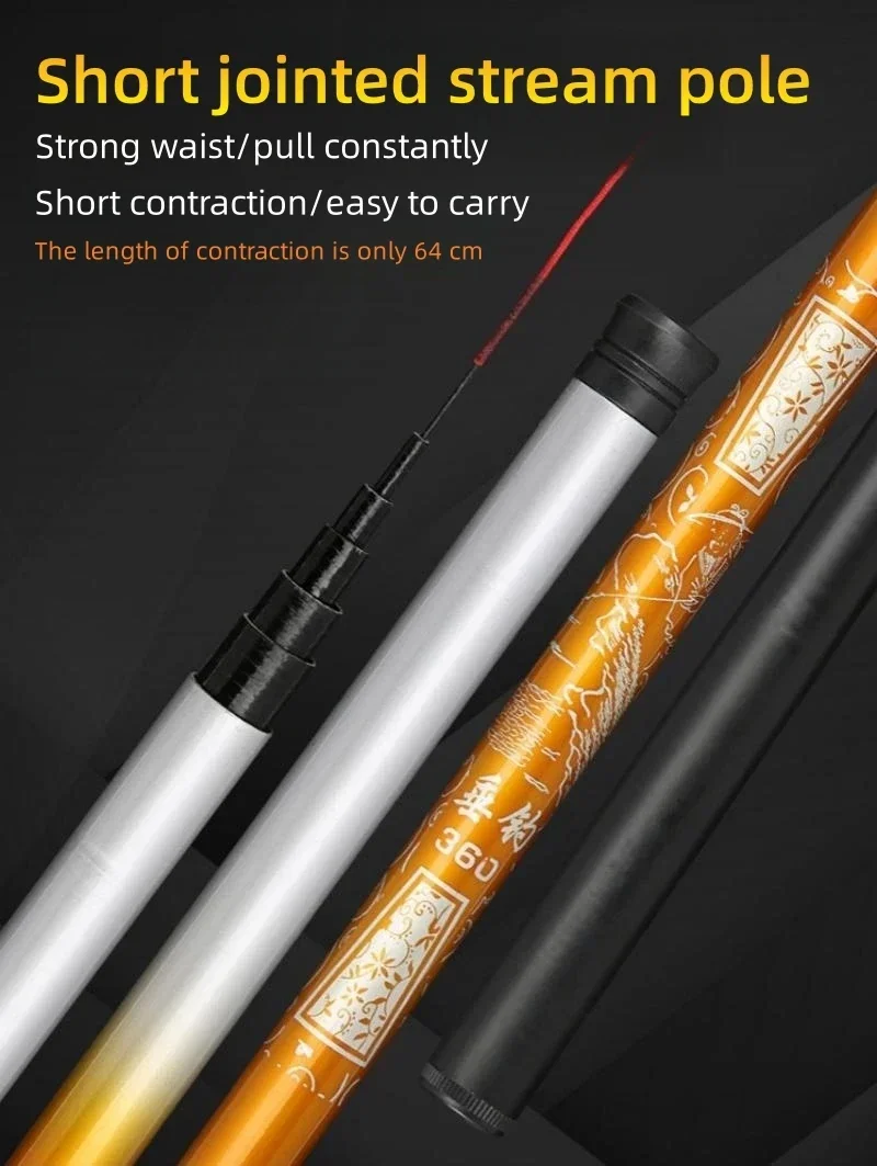 Caña de pescar Manual de fibra de carbono dura Extra larga, flujo de caña de pescar telescópica, 3,6 M/4,5 M/5,4 M/6,3 M/7,2 M