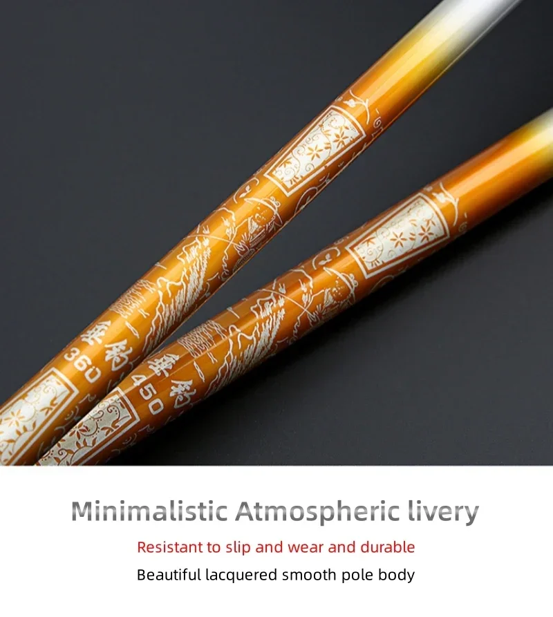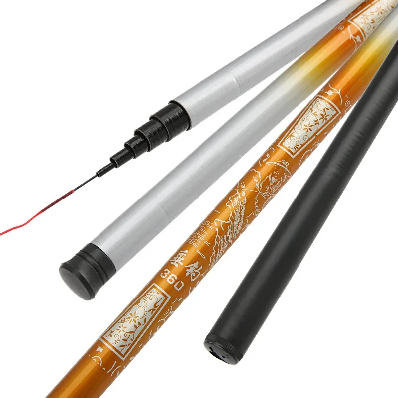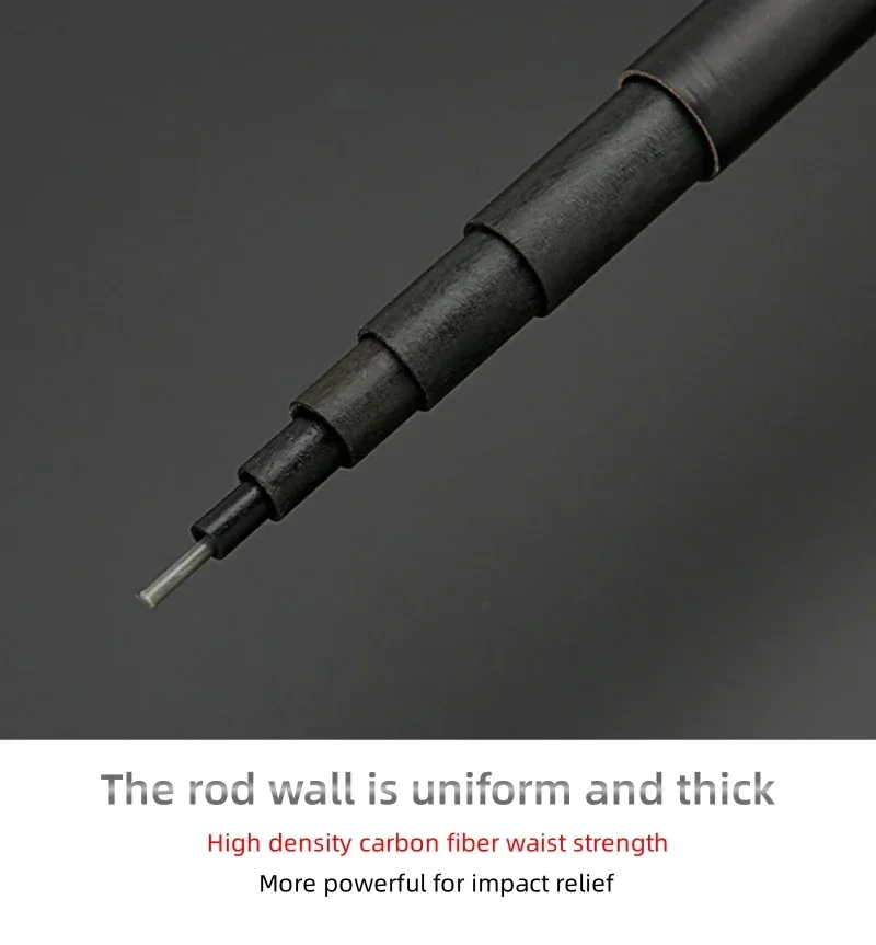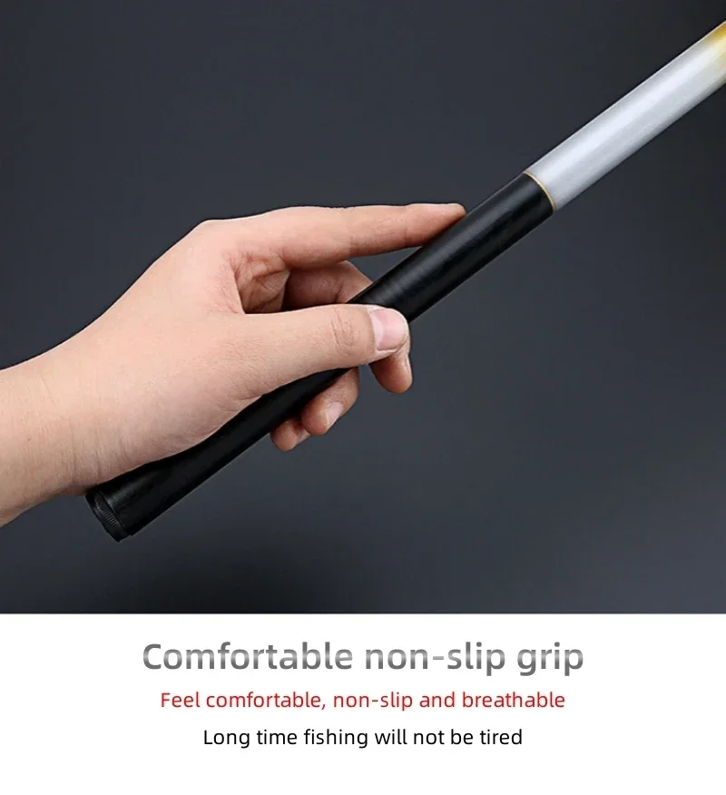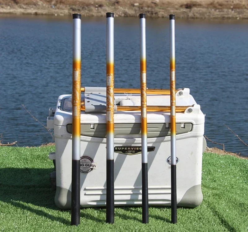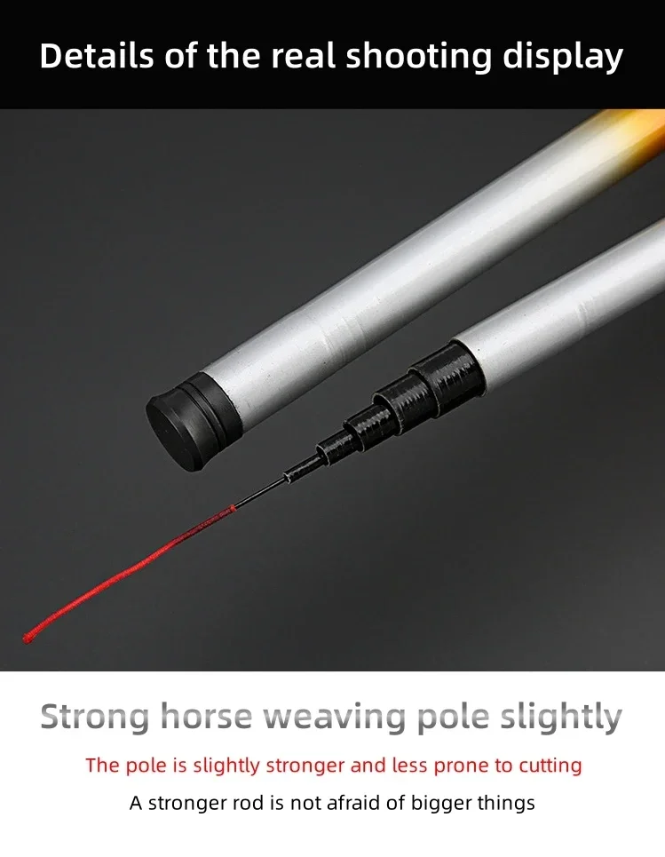 3,6 M/4,5 M/5,4 M/6,3 M/7,2 M Extra largo duro fibra de carbono Manual caña de pescar telescópica Flujo de caña de pescar