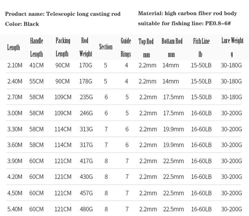 * Material: Cuerpo de varilla de fibra de alto carbono