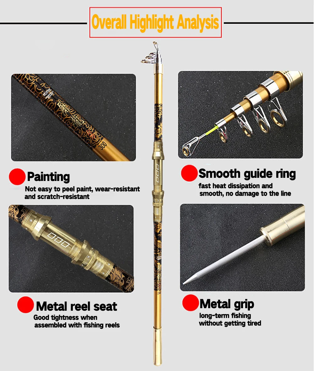 3.El anillo de refuerzo metálico de la interfaz aprieta la conexión entre las secciones, mejora la coordinación general y evita que la caña de pescar se caiga.