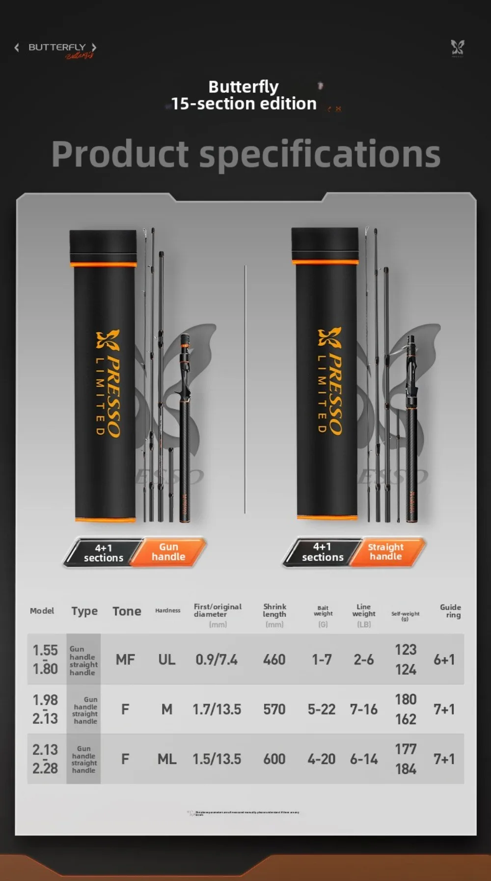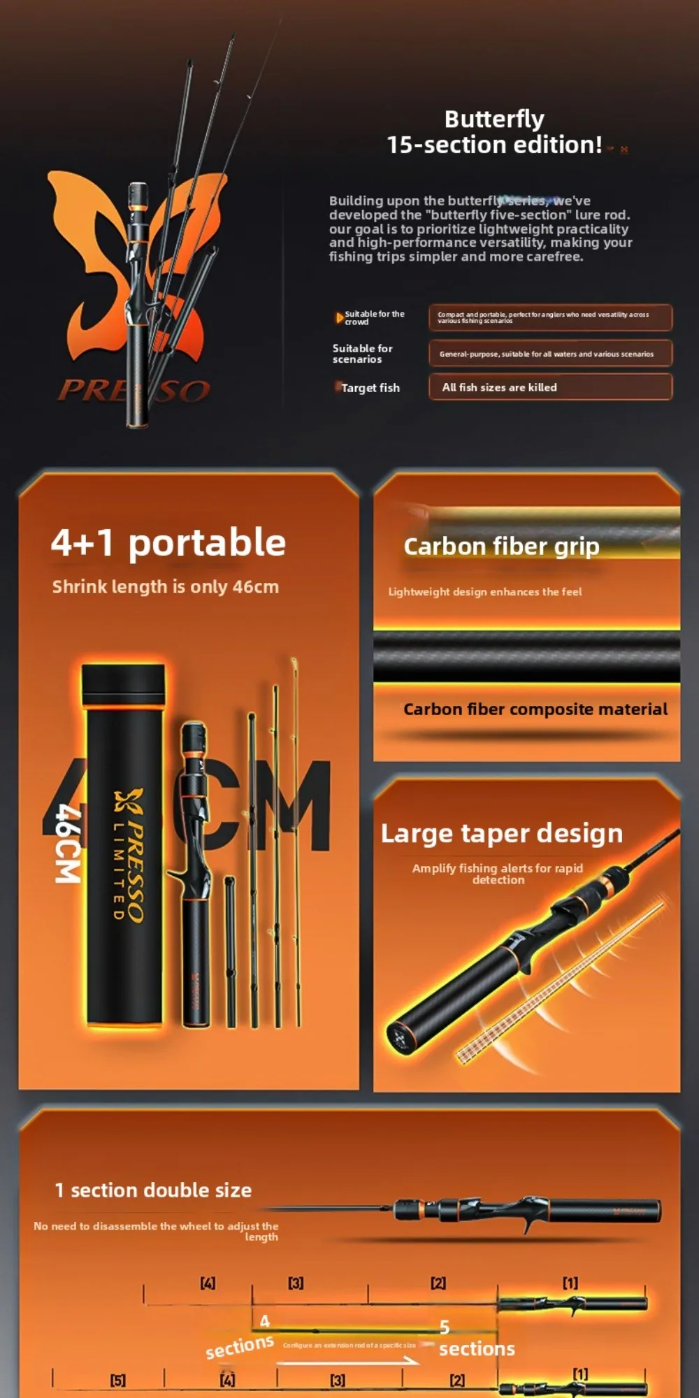 Versatile Multi-section Design:Butterfly multi-sections offer a compact 46cm closed length for easy transport.