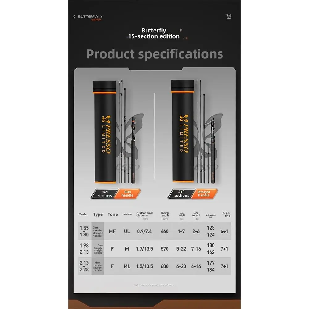 Butterfly Rod|Histar Butterfly|High Carbon Ultra Light Design:Crafted from high carbon for unparalleled lightness, enhancing your fishing experience.