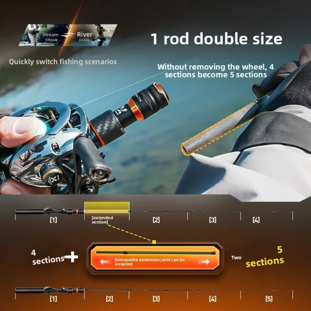 Durable Hollow Carbon Reel Seat:Hollow carbon fiber reel seat ensures quick conduction and durability. 1. Long one section carbon fiber handle.