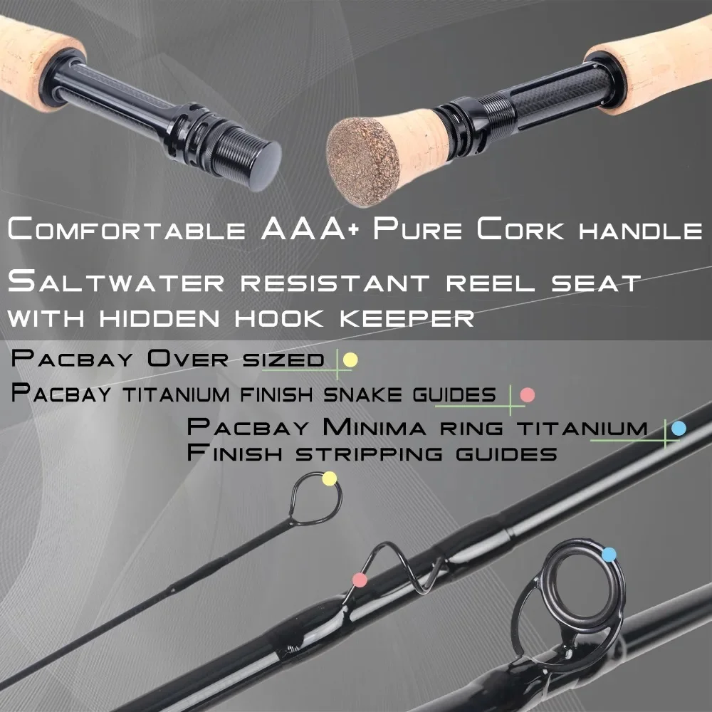 ****Todos los componentes de alta gama se utilizan en esta varilla, guías de serpiente de titanio Pacbay y guía de pelado de anillo Minima.Asiento de carrete de aluminio mecanizado CNC con inserto de fibra de carbono.Mango de corcho puro de grado AAA.