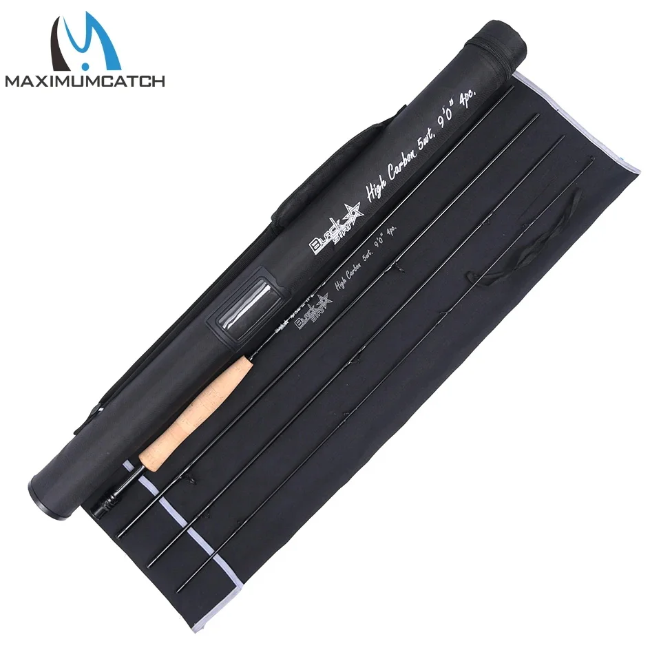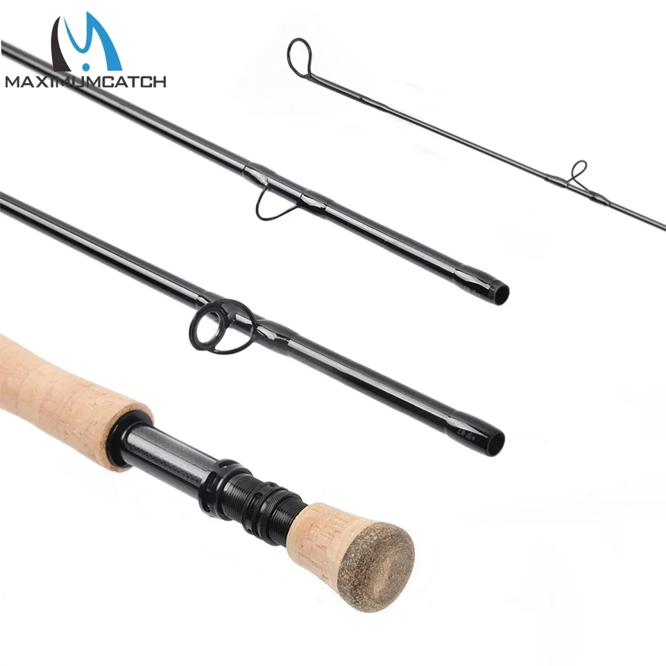 Caña de pescar con mosca Maximumcatch 4/5/6/7/8WT, caña de pescar con mosca de acción rápida de fibra de carbono 4SEC de 9 pies con tubo