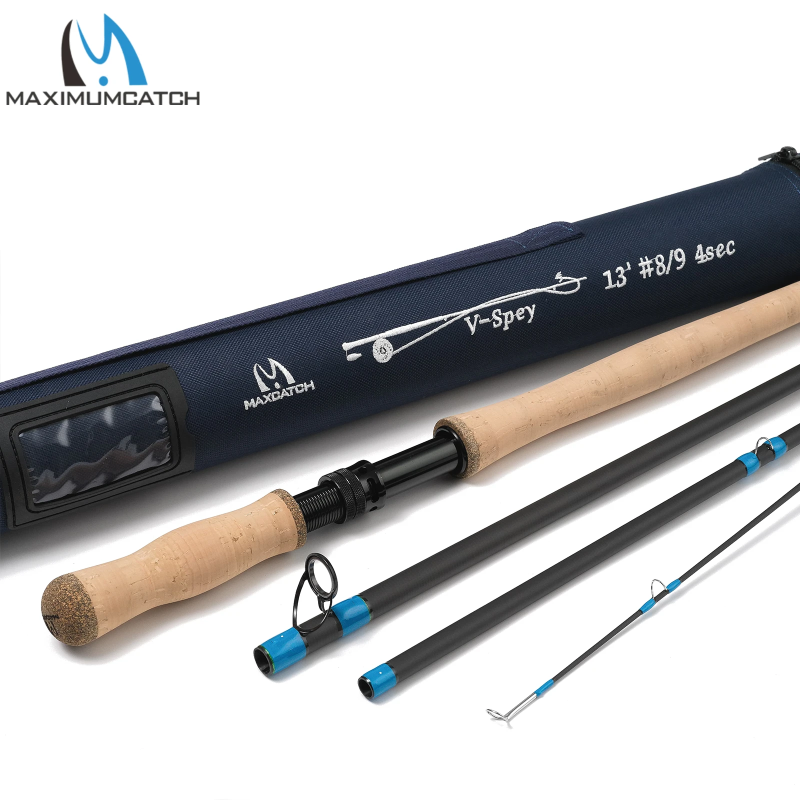 Caña de pescar con mosca Maximumcatch Spey 12'6''/12'9''/13'/14' 7/8/9/10WT Caña de pescar con mosca de carbono de acción rápida media con tubo adicional
