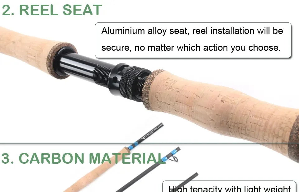 *****TATA DE DOS MANOS RESISTENTE A CONFIABLE: diseñada para fabricar una varilla de dos manos con alto rendimiento pero aún asequible.Muchos pescadores quieren probar la caña de dos manos, especialmente cuando pescan en aguas más amplias y luchan con peces más grandes.Esta es la caña de dinero sin duda con la mejor buena relación calidad-precio del mercado.Muy fuerte y muy duradero.Y aún así muy fácil de usar.