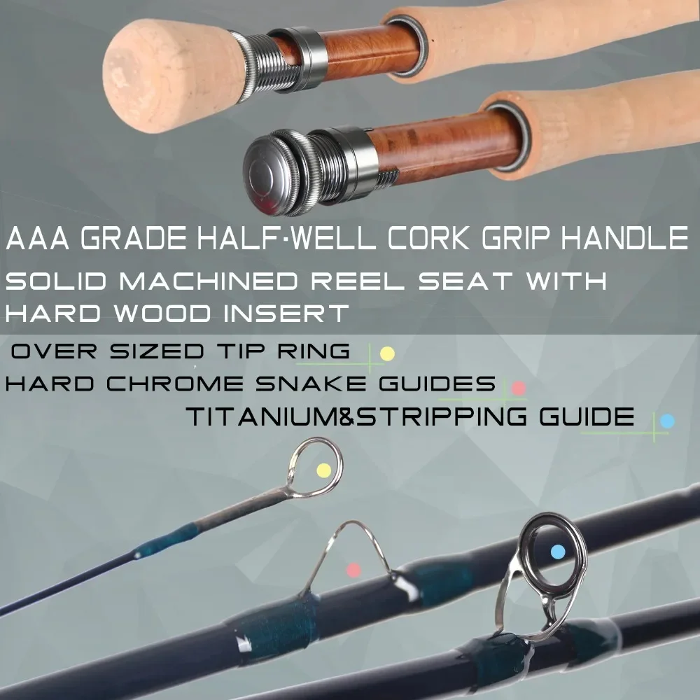 *** Hecho de fibra de carbono 100% IM10 y carrete de aluminio mecanizado sólido con un agarre de corcho de medio pozo de grado AAA.