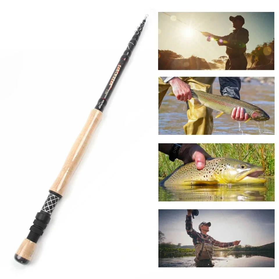 1. Diseño retráctil portátil, la longitud de almacenamiento es inferior a 60 cm, fácil de transportar, es una "caña de mosca de viaje" amada por amigos pescadores, es necesaria para el turismo al aire libre y la pesca de ocio. El Tamaño del paquete es corto y compacto, y se puede colocar fácilmente en una bolsa de viaje, bolsa de bicicleta o maletero de automóvil.