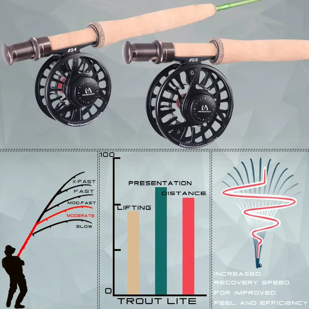 Caña de pescar con mosca de trucha Maximumcatch Presentación de luz de acción moderada con tubo de caña dura