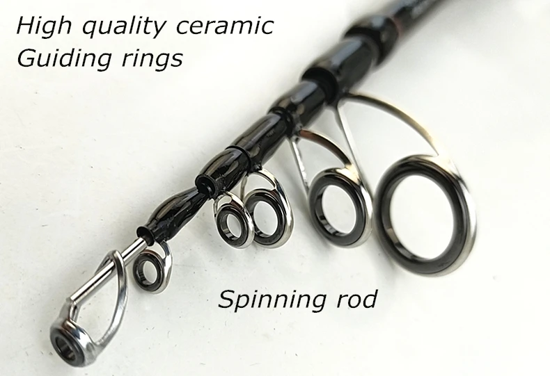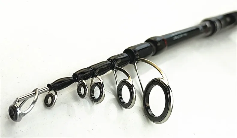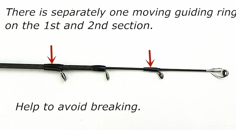 Hay por separado un anillo guía móvil para las 1.a y 2.a secciones, para compartir el poder de pesca, evitando que se rompa.