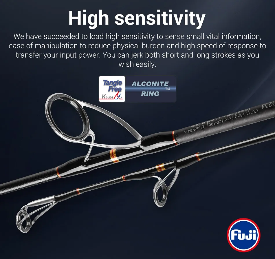 Para ir de frente a cabeza con peces enormes a profundidades de 120 m a 200 m, diseñamos este modelo de jigging de lanzamiento de cebo para facilitar su uso en los jigs, así como una fácil pelea una vez que se logra una conexión.