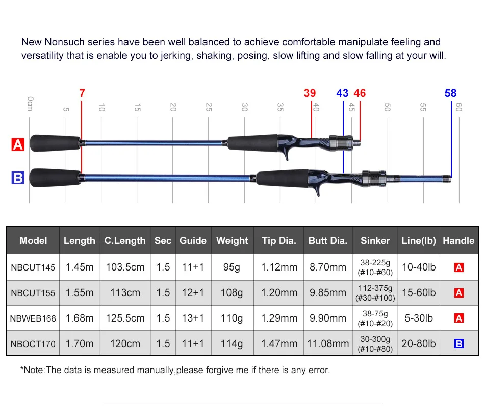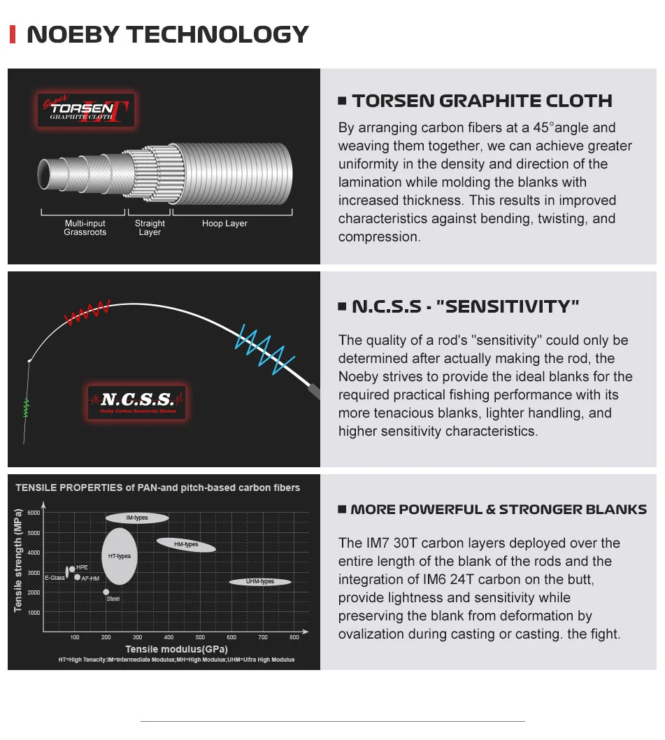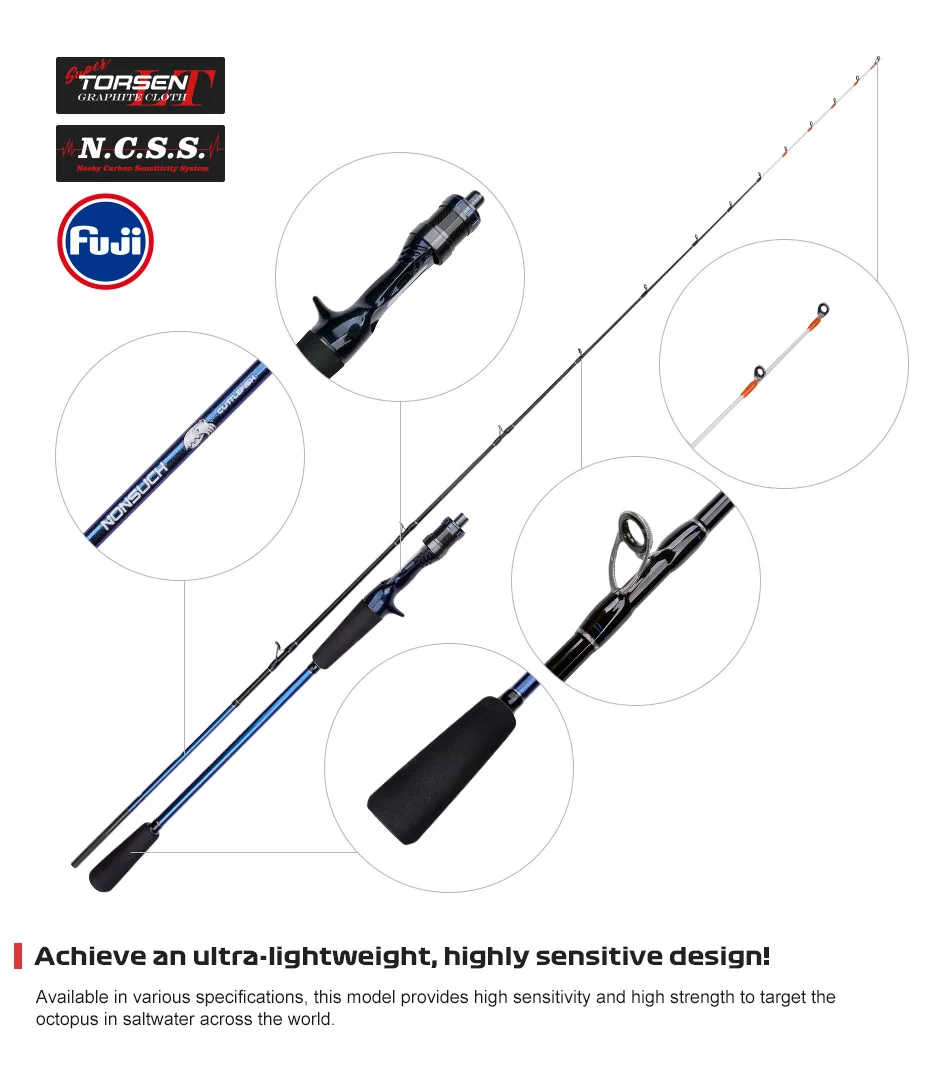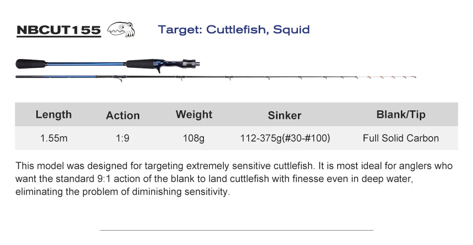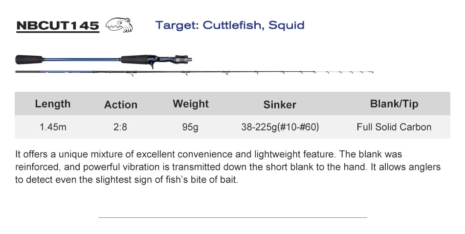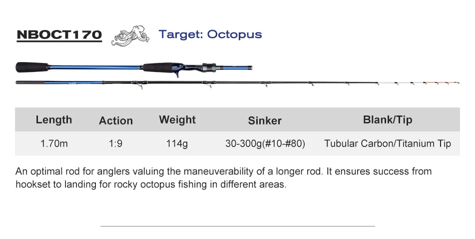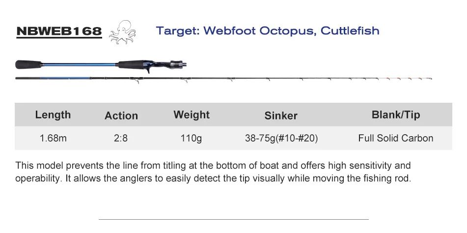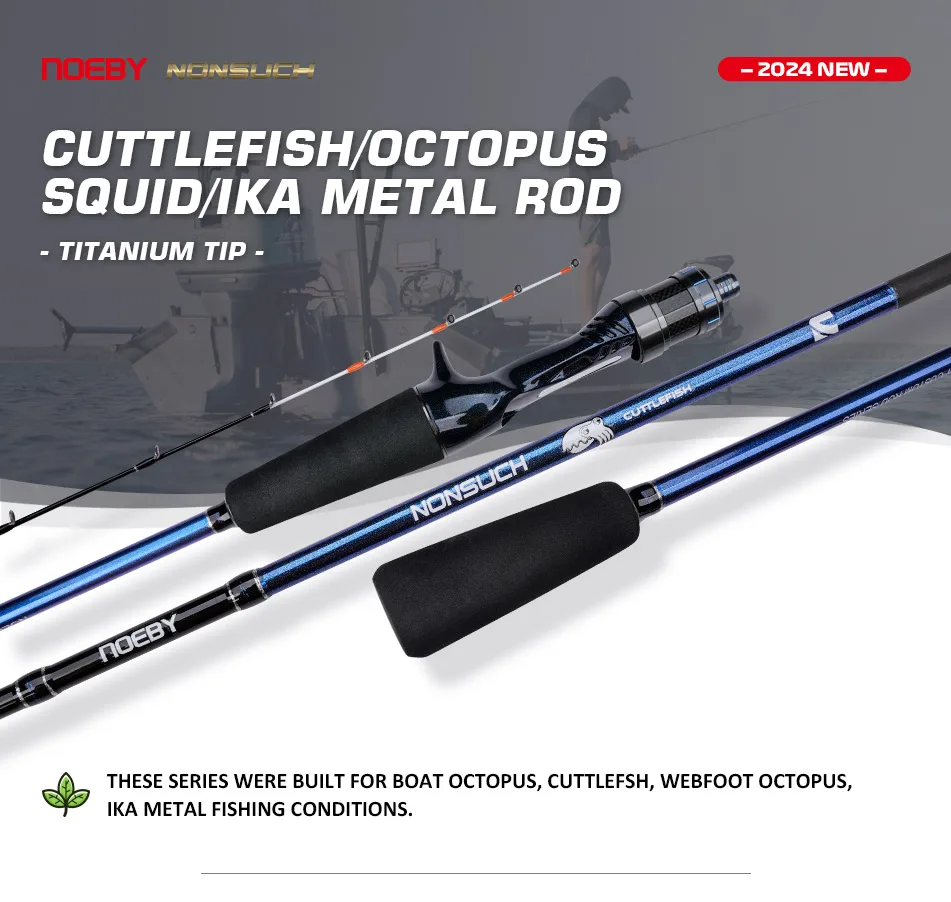 Caña de pescar de pulpo con punta de titanio de NOEBY, 1,55m, 1,68m, 1,7m, caña de pescar para barcos de carbono sólido completo