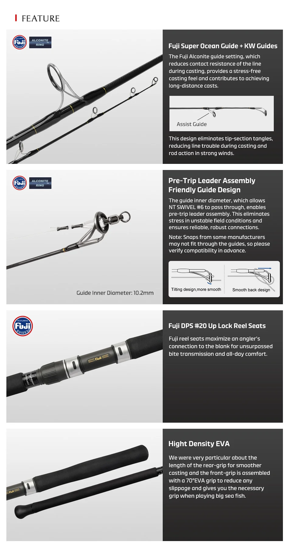 NOEBY VOYAGER Kingfish Edition Fishing Rod 2.57m Popping Offshore Casting Fuji Torayca 20kg Drag Big Game Saltwater Fishing Rods