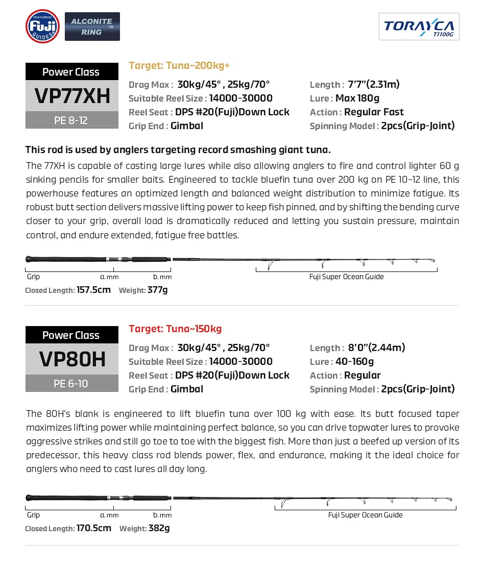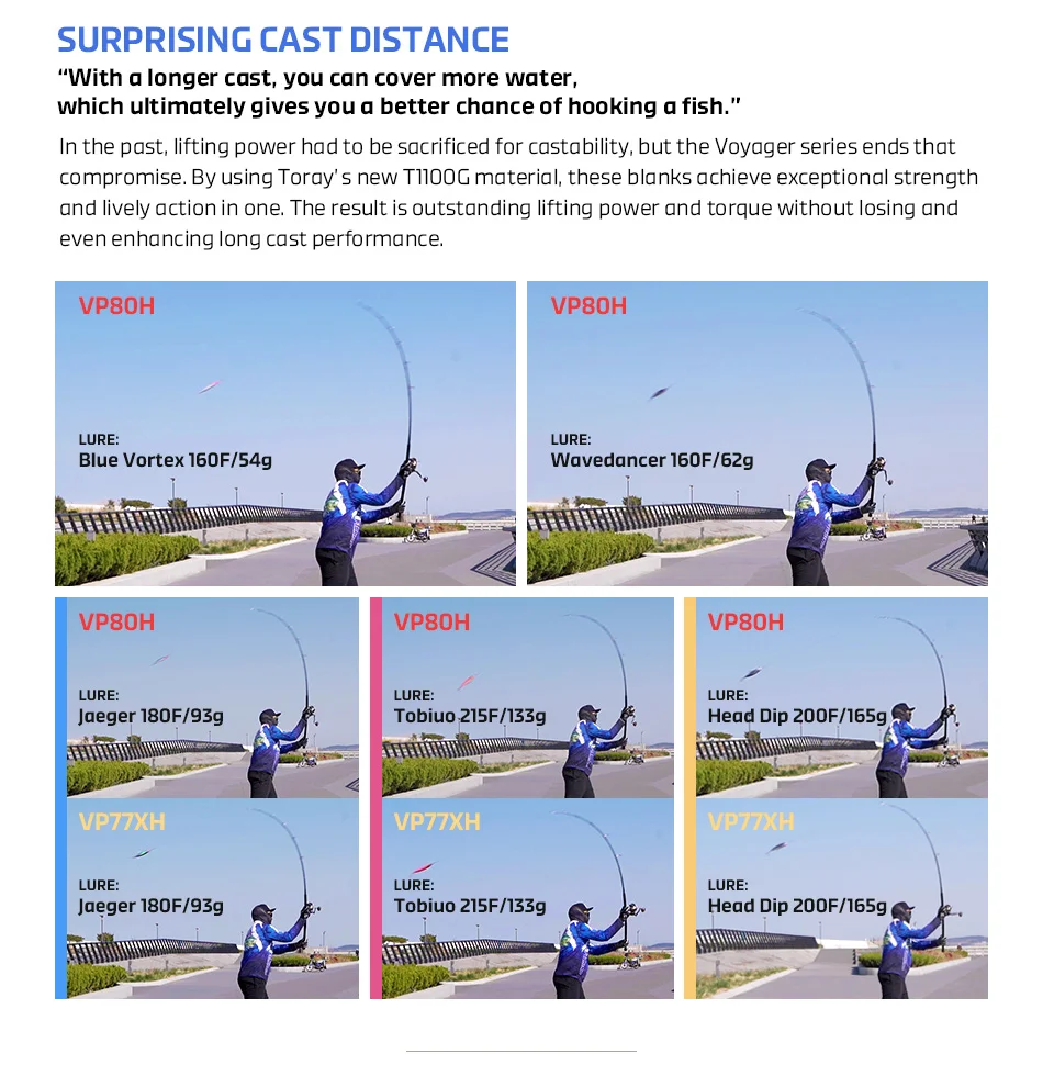 El Voyager Tuna está diseñado principalmente para el juego de lanzamiento del atún y el atún azulado.Por supuesto, las varillas son muy adecuadas para el juego de lanzamiento de GT y el amberjack de cola amarilla.El vago Voyager Tuna es un arma elegida para pescadores expertos y está tan bien equilibrado que cualquier pescador puede manejarlo con autoridad.