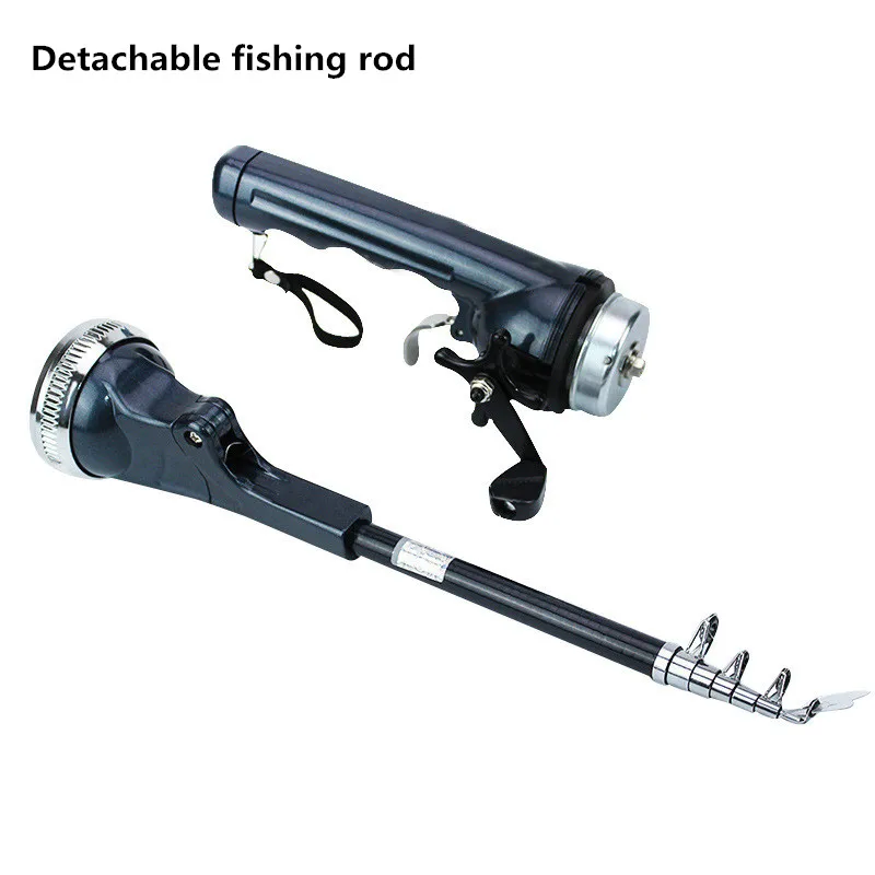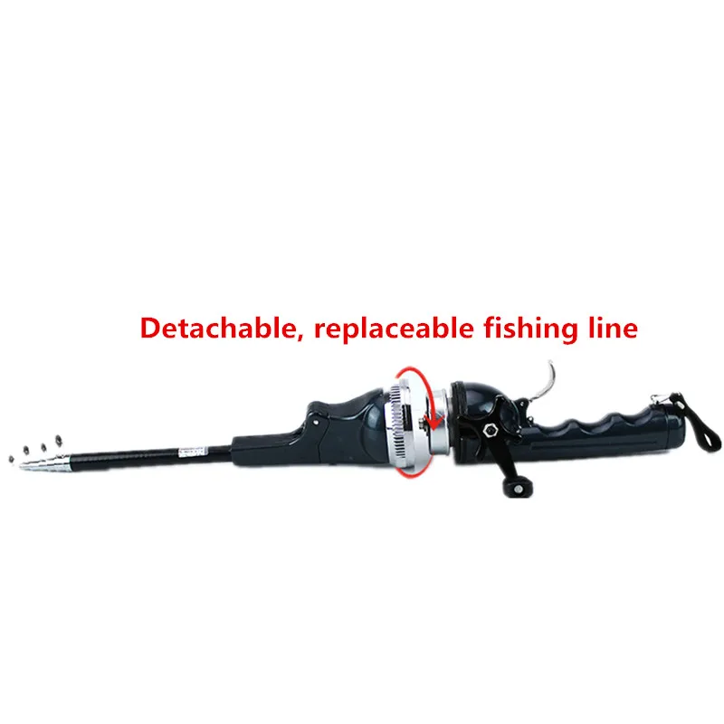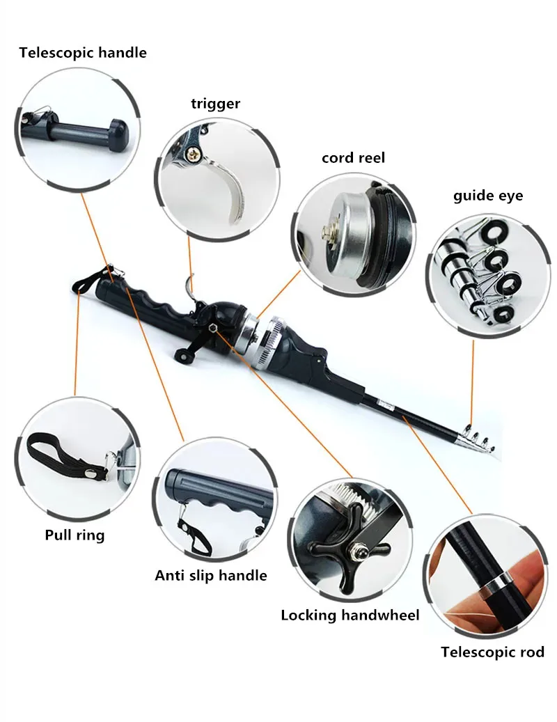 Caña de pescar plegable portátil con caña de pescar voladora telescópica de acero inoxidable y desplazamiento, mini caña de pescar para pesca al aire libre