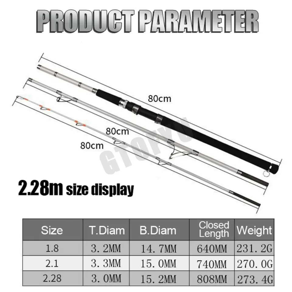 Señuelo: 80-150 g, Longitud: 1,8 M-2,28 M, Prueba: 20 kg arriba